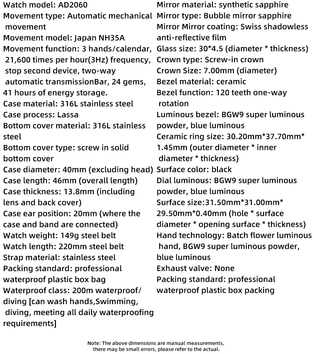 WINDING WATCHES: The addiesdive watch is equipped with a super luminous dial, a