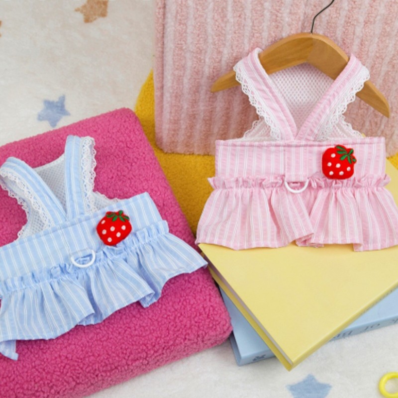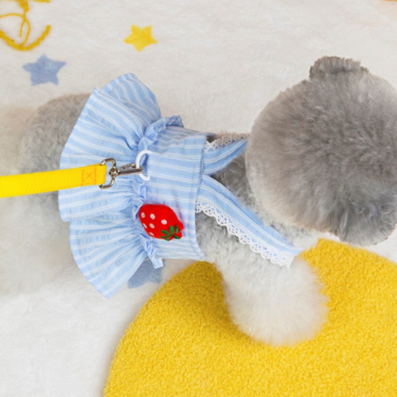 The strawberry decoration on the dress adds a cute and trendy touch, making your pet stand out in a fashionable way.