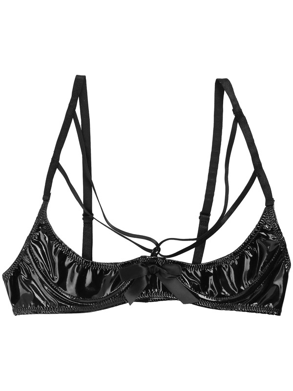 Women Strappy Open Cup Patent Leather Bowknot Underwired Bra Tops.