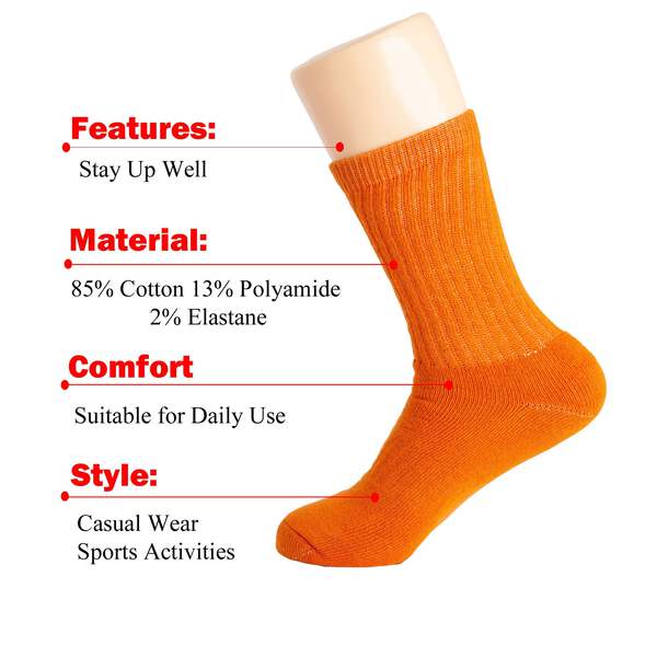 Brighten up your fall wardrobe with these women’s orange crew socks, designed for comfort, style, and seasonal flair. Crafted from a breathable blend of 85% cotton, 13% polyamide, and 2% elastane, these socks offer a lightweight, snug, and stretchable fit.