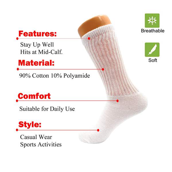 Crafted to fit women’s shoe sizes 5–10 (sock size 9–11), these socks are machine washable and built to retain their shape and softness after multiple washes. Whether you're on the go or relaxing, these all-white cotton socks deliver reliable performance and clean, versatile style.