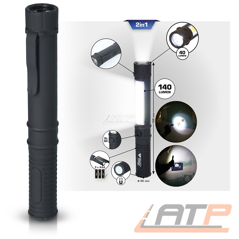 2-in-1 COB-Taschenlampe mit 140 Lumen