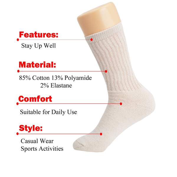 All-day comfort and breathable performance—designed for modern women. These Ecru Cotton Crew Socks come in a 3-pair pack and are tailored for shoe sizes 5-10 (sock size 9-11). Crafted from a soft, eco-conscious blend of 85% cotton, 13% polyamide, and 2% elastane, they deliver both comfort and durability.