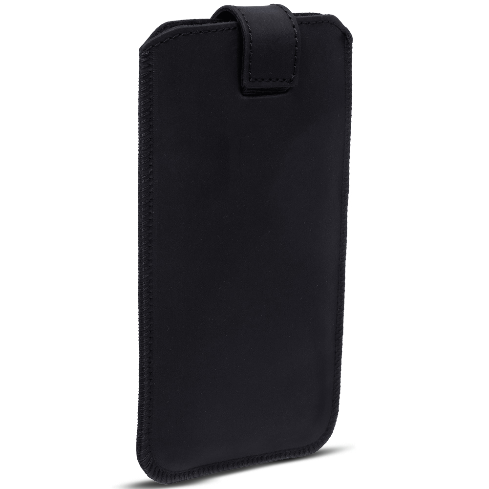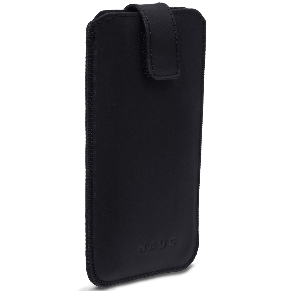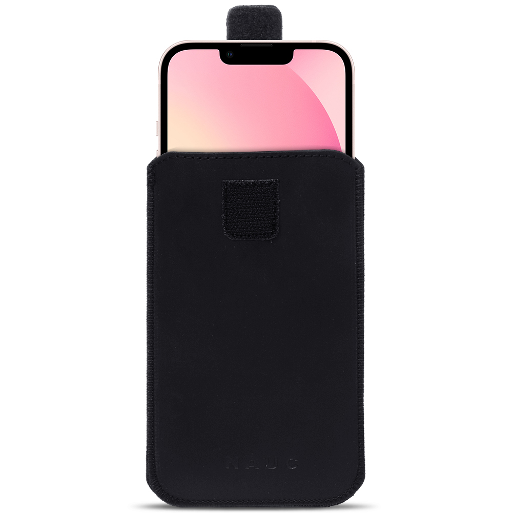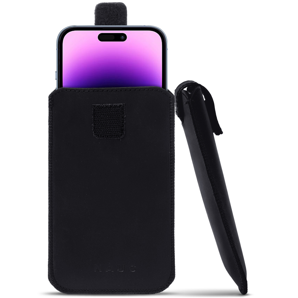 1x Universal Pull Tab Handy Leder Tasche „Curley“ kompatibel mit Apple iPhone 17 16 Plus / Pro Max / 16e in Ihrer gewünschten Farbe Schwarz