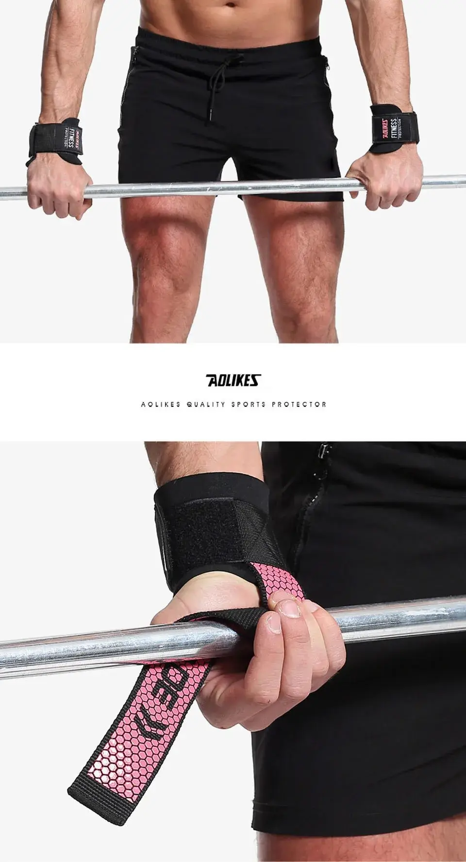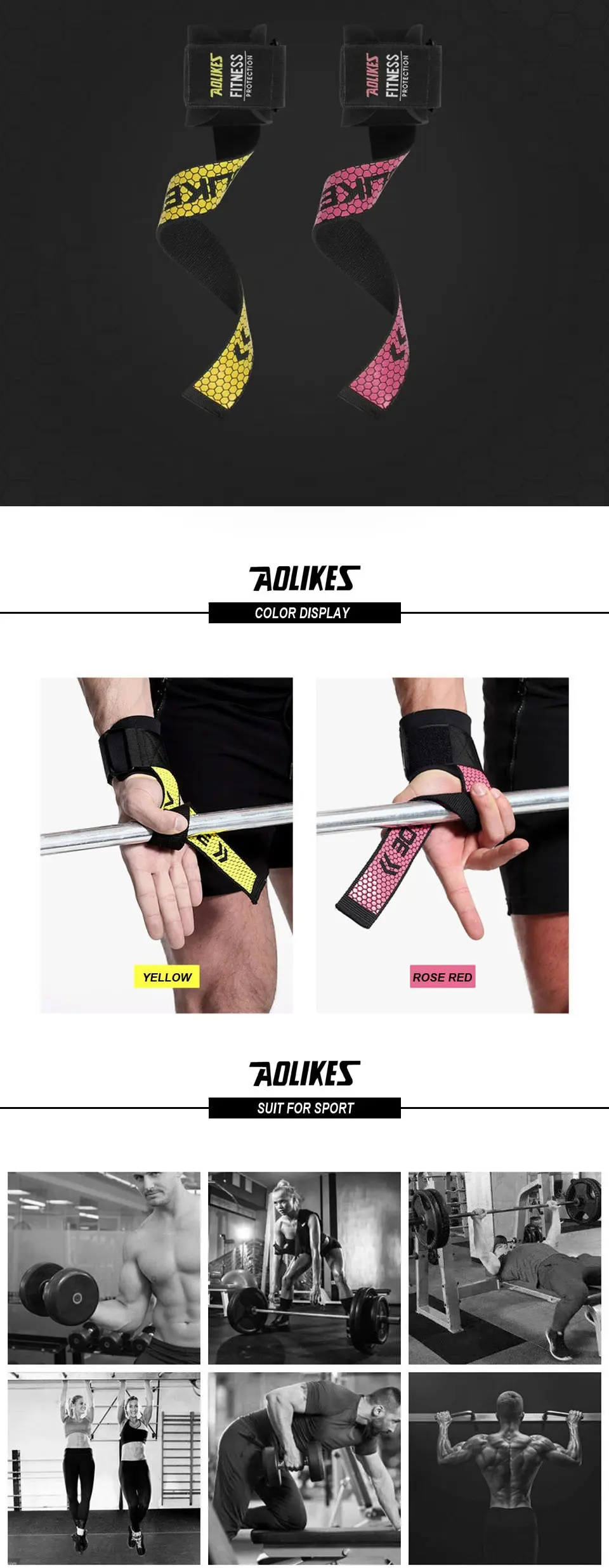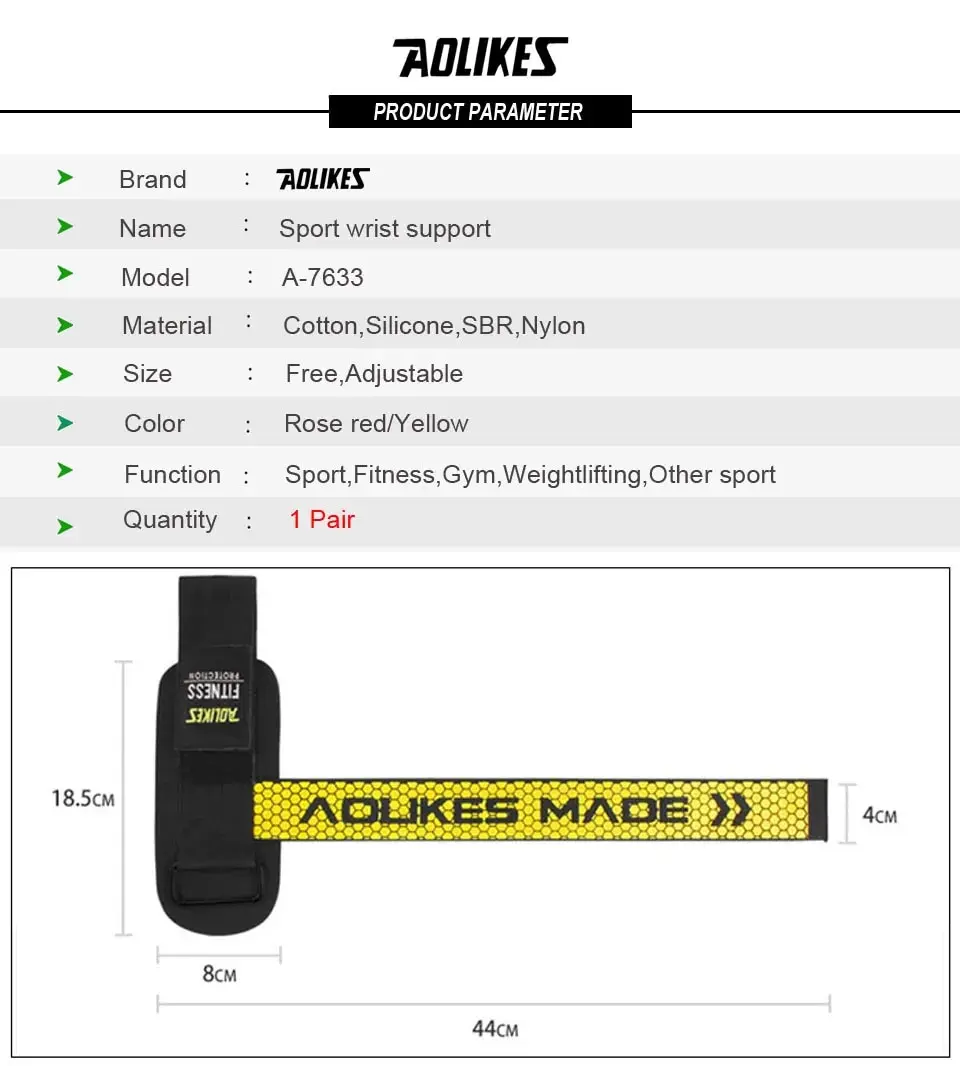 AOLIKES 1 Pair Gym Fitness Weight lifting Grip Straps Dumbbell Hand Grips Training Wrist Support Bands for barbell Pull up