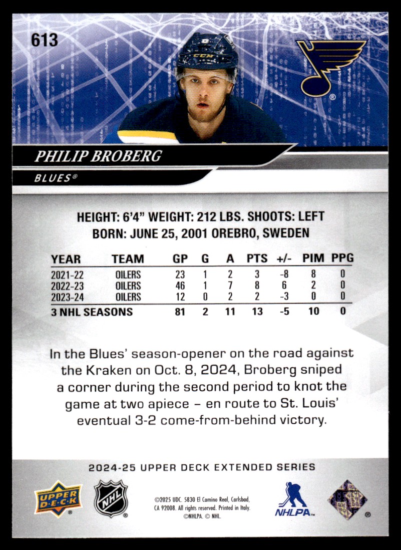 | Philip Broberg #613 2024-25 Upper Deck St. Louis Blues |
