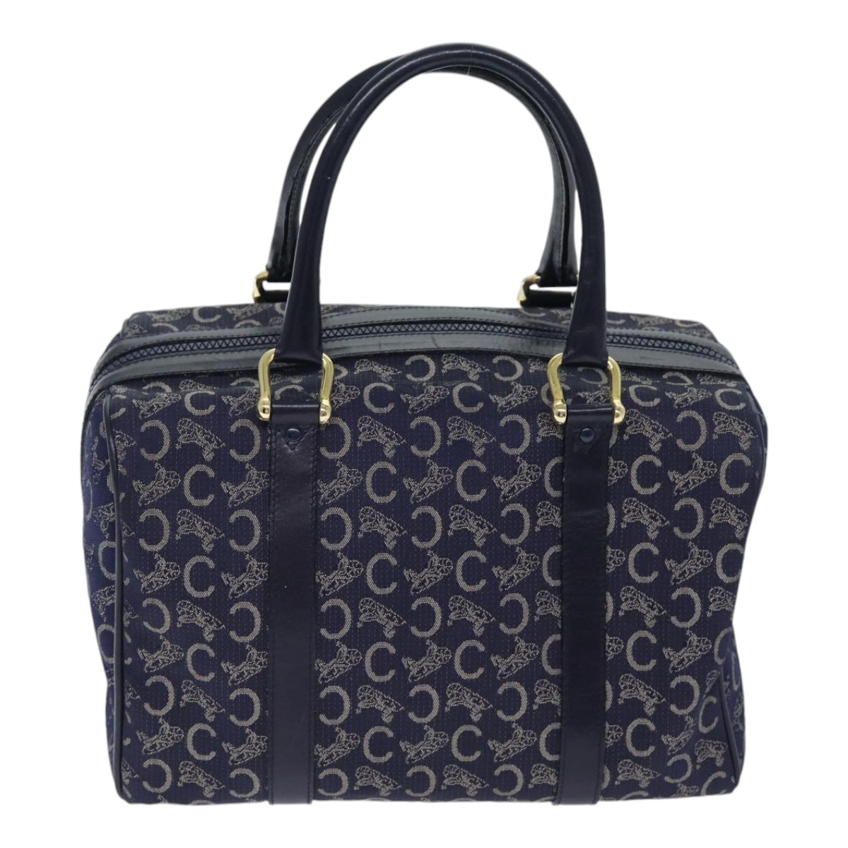 CELINE C Sulky Boston Bag Canvas Leather Navy Gold Auth yk14797