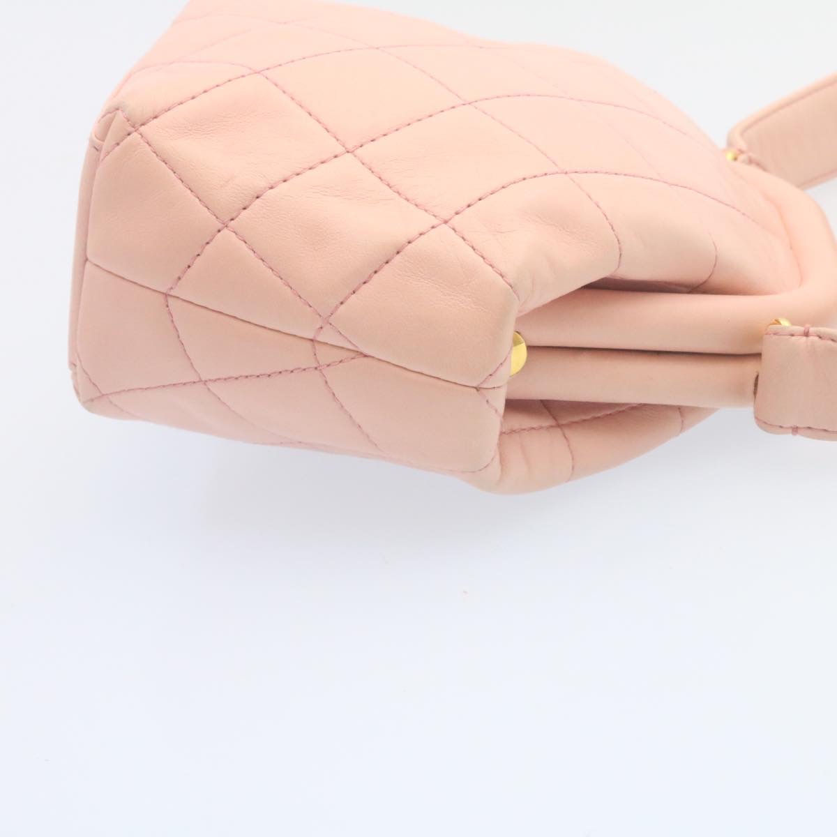 CHANEL Matelasse Hand Bag Lamb Skin Pink CC Auth 29107AV