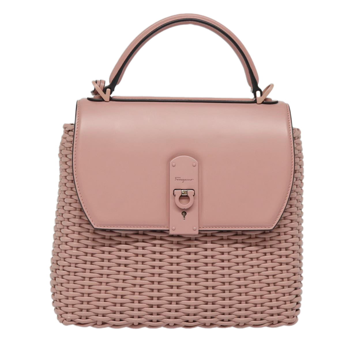 Salvatore Ferragamo Gancini Shoulder Bag Leather Pink Auth 84233AV