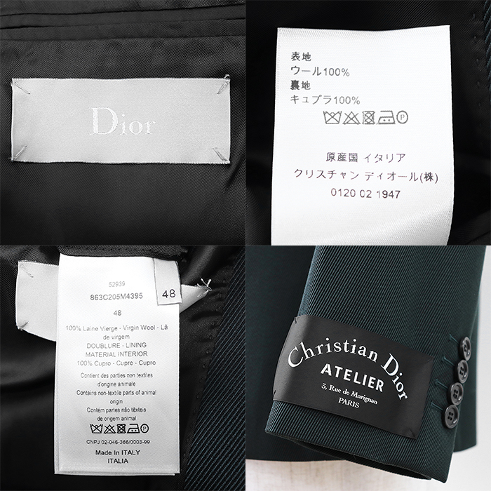 | Series | Excellent condition Dior Atelier tailored 2-button jacket, fully lined, 100% wool, with accessories, men's size 48, moss green, made in Italy. |
