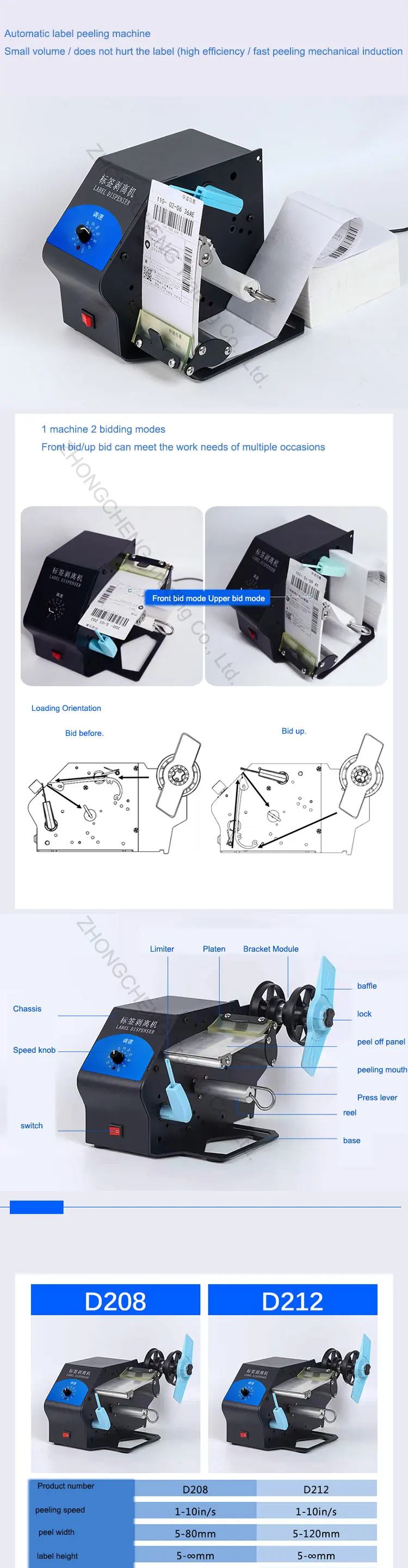 Product number: D208 peeling speed: 1-10in/s peel width:5-80mm label height:5-8mm Types of labels:clear/matte silver/copper/thermal rated power: 18