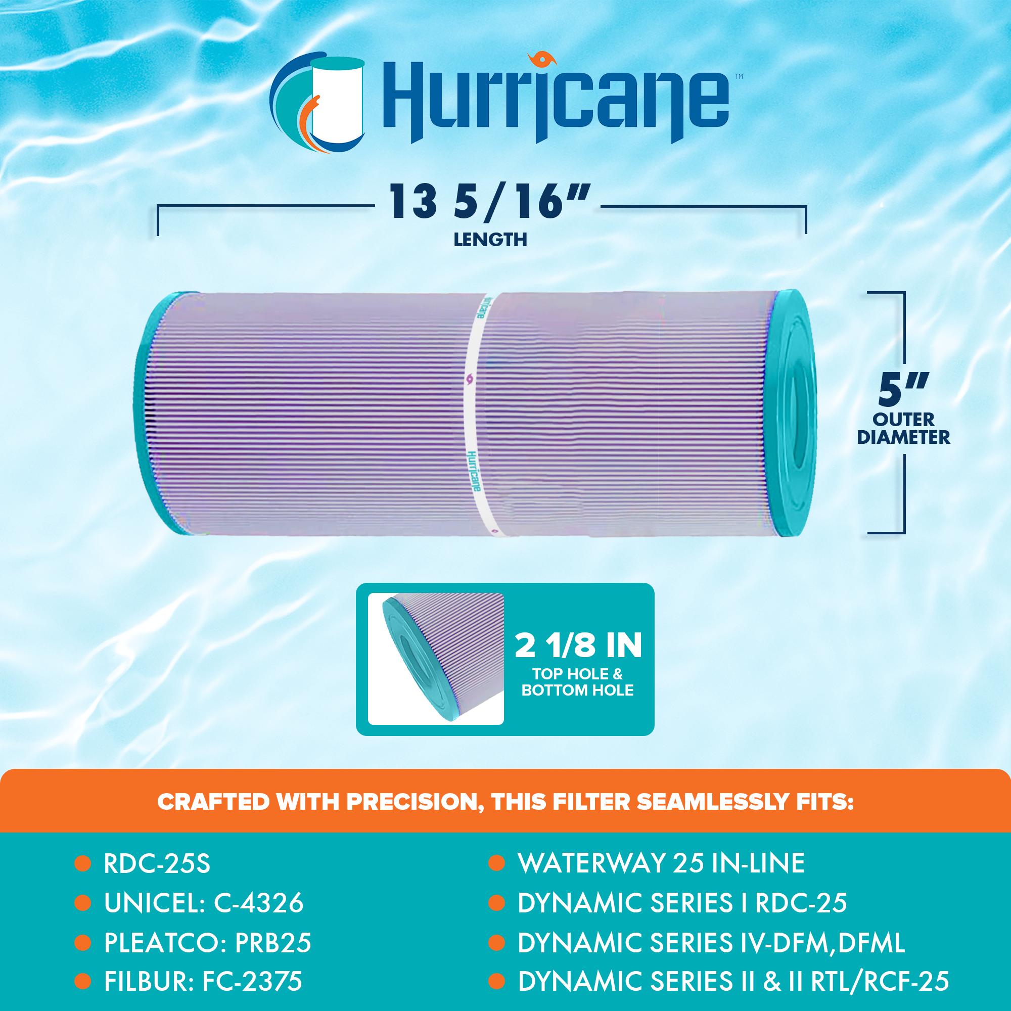 • Compatible with PRB25, Unicel C-4326, Filbur FC-2375, Dynamic Series I RDC-25, Waterway 25 in-Line