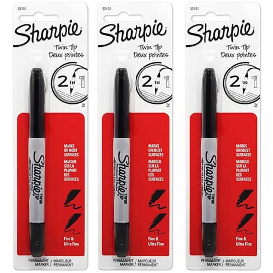 With two tips in one, Sharpie Twin Tip Permanent Markers let you express yourself any way you want. Bold to the max and permanent to the core, Sharpie permanent markers inspire you to transform ordinary surfaces into passionately creative statements. Made to write practically everywhere, vivid Sharpie markers eliminate dull and boring. Sharpie has iconic ink that dries quickly and resists both water and fading. While pale imitations wither away, Sharpie markers make creations that endure. Featuring both a bold fine point and an ultra fine point for sharpe details, Sharpie Twin Tip Permanent Markers ignite courageous self-expression.