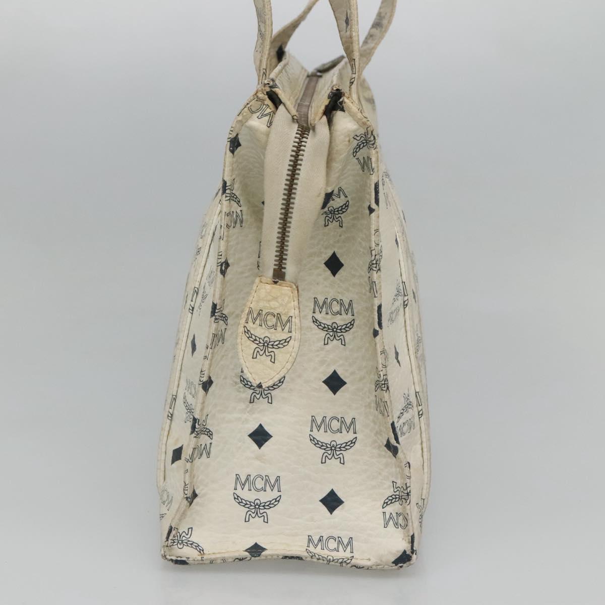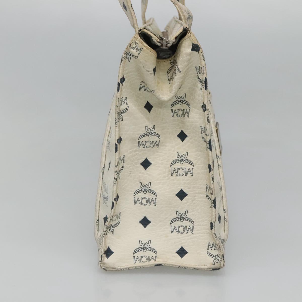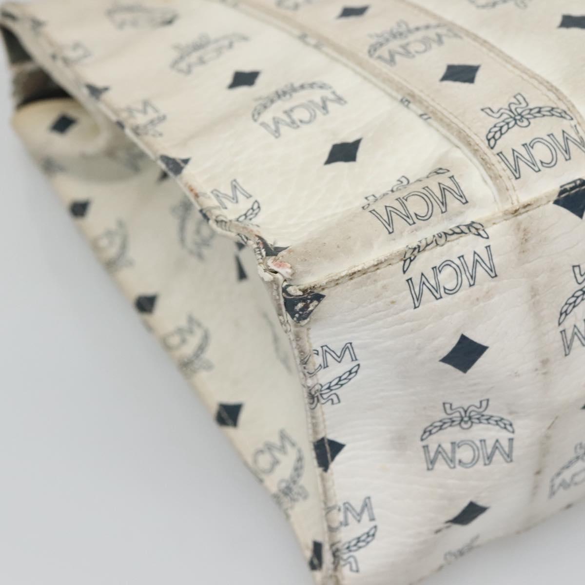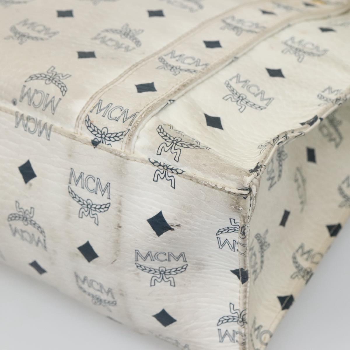 MCM Logogram Vicetos Tote Bag PVC Leather White Gold Auth 120736