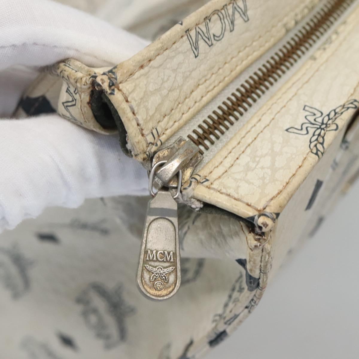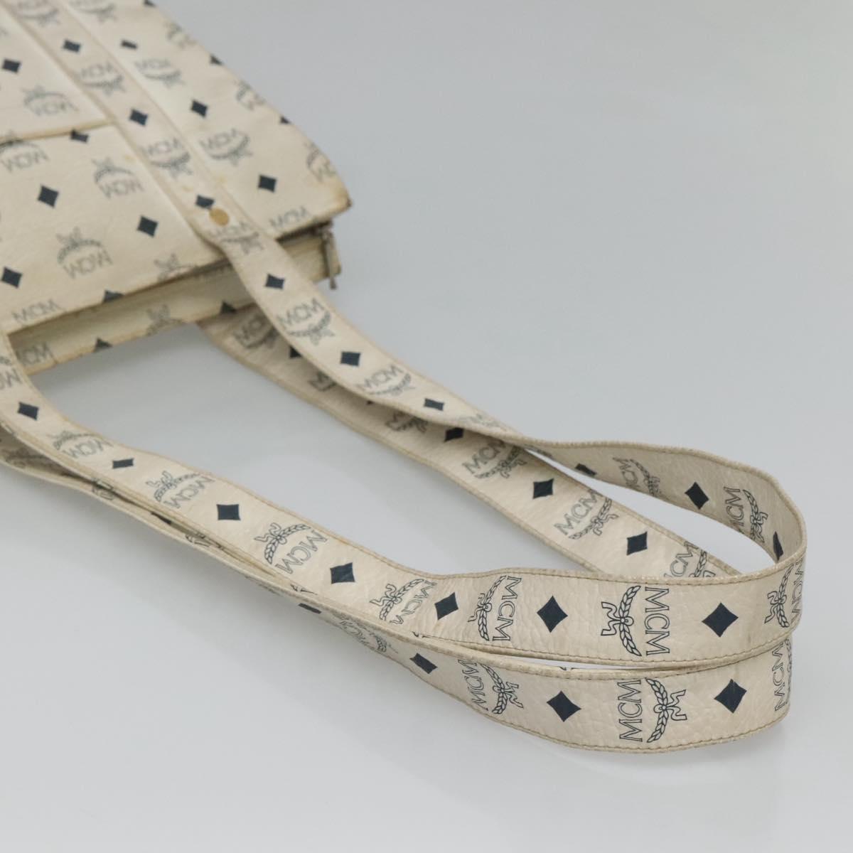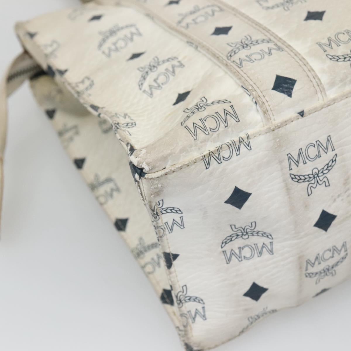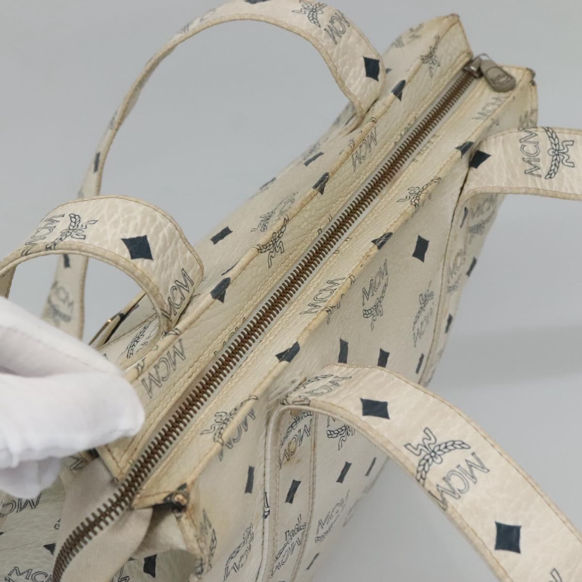 MCM Logogram Vicetos Tote Bag PVC Leather White Gold Auth 120736
