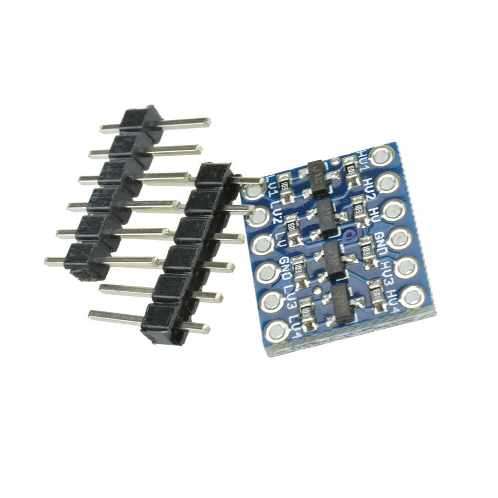 If you’ve ever tried to connect a 3.3V device to a 5V system, you know what a challenge it can be. bi-directional logic level converter is a small device that safely steps down 5V signals to 3.3V AND steps up 3.3V to 5V at the same time. This level converter also works with 2.8V and 1.8V devices. What really separates this Logic level converter from our previous versions is that you can successfully set your high and low voltages and step up and down between them safely on the same channel. Each level converter has the capability of converting 4 pins on the high side to 4 pins on the low side with two inputs and two outputs provided for each side.