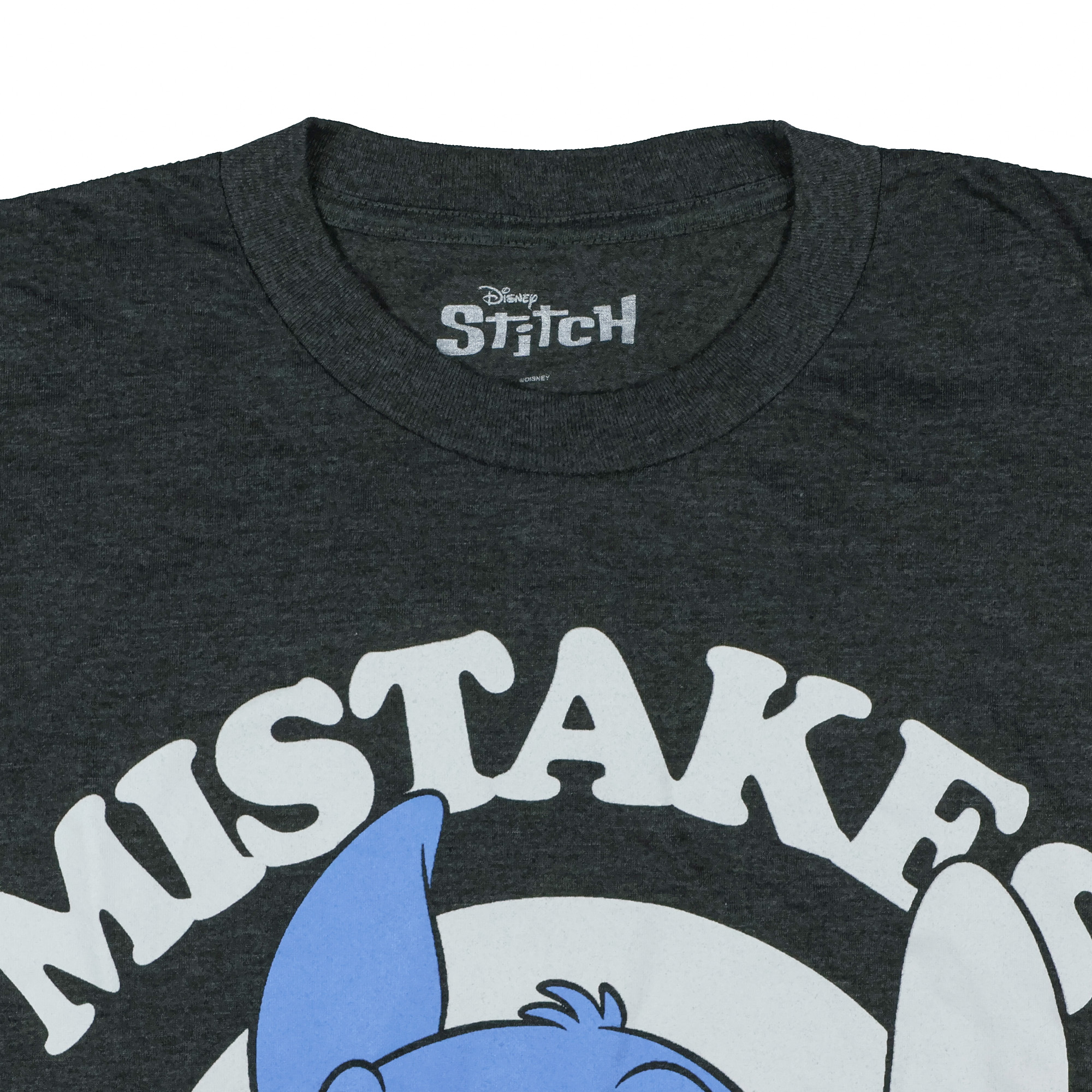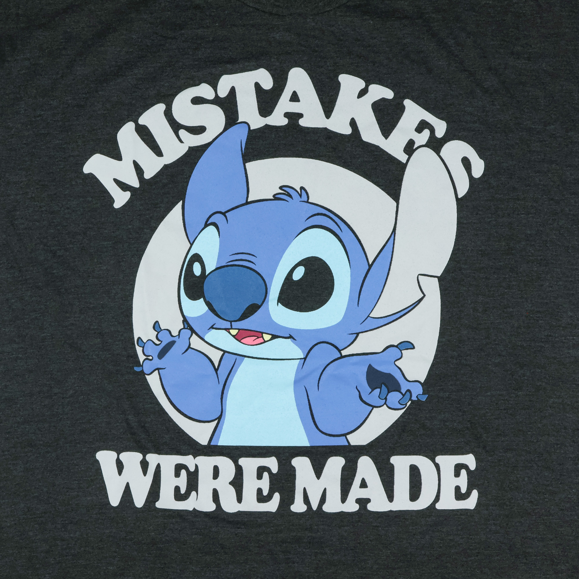Add a little character to your casual rotation with this Stitch graphic t-shirt. The design shows Stitch shrugging inside a circle, paired with the words “Mistakes Were Made” in large text—an easy-going statement piece for everyday wear. Whether heading to the store, chilling at home, or strolling around a theme park, this tee fits your routine.