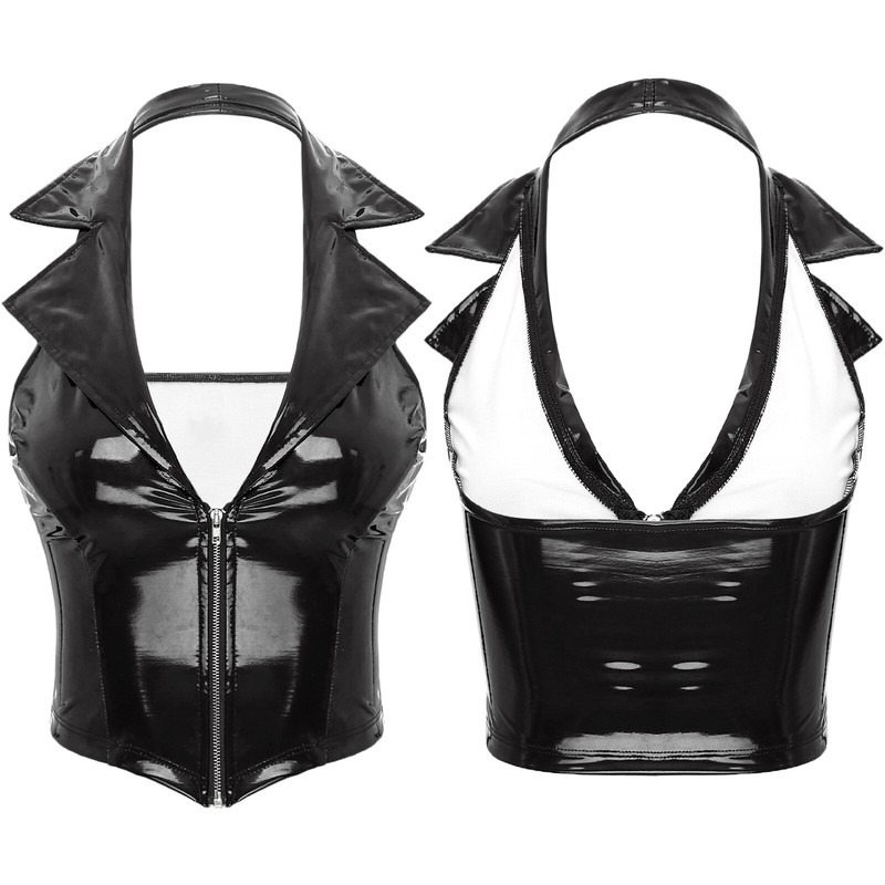 Designed with halter, notch lapel and deep v neck, front zipper, sleeveless and backless, slim fit and crop length, making you very sexy.