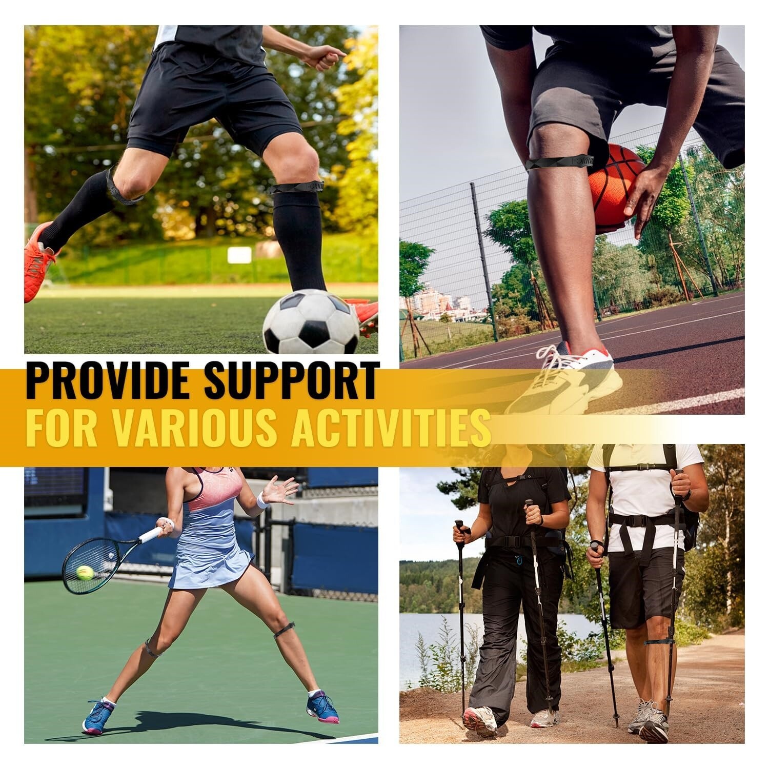 ✅NON-SLIP PATELLAR TENDON STRAP - Anti-slip design surface, Flexible silicone provides 360-degree wrap-around support whenever in sport or at work. It will securely stay in place and not slide suddenly when you exercise. Pefect for sports like running, basketball, volleyball, football and hiking that involve frequent jumping and landing.