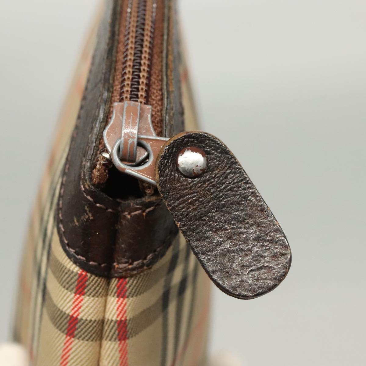Burberrys Nova Check Clutch Bag Canvas Beige Silver Auth ti3090