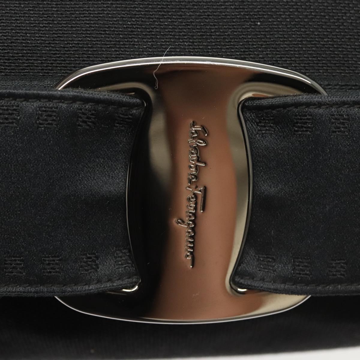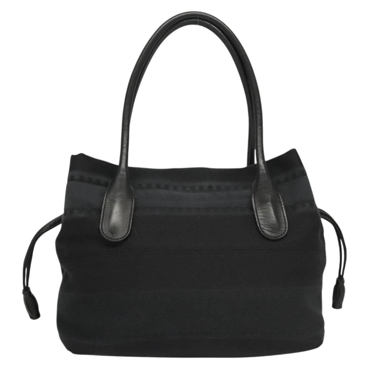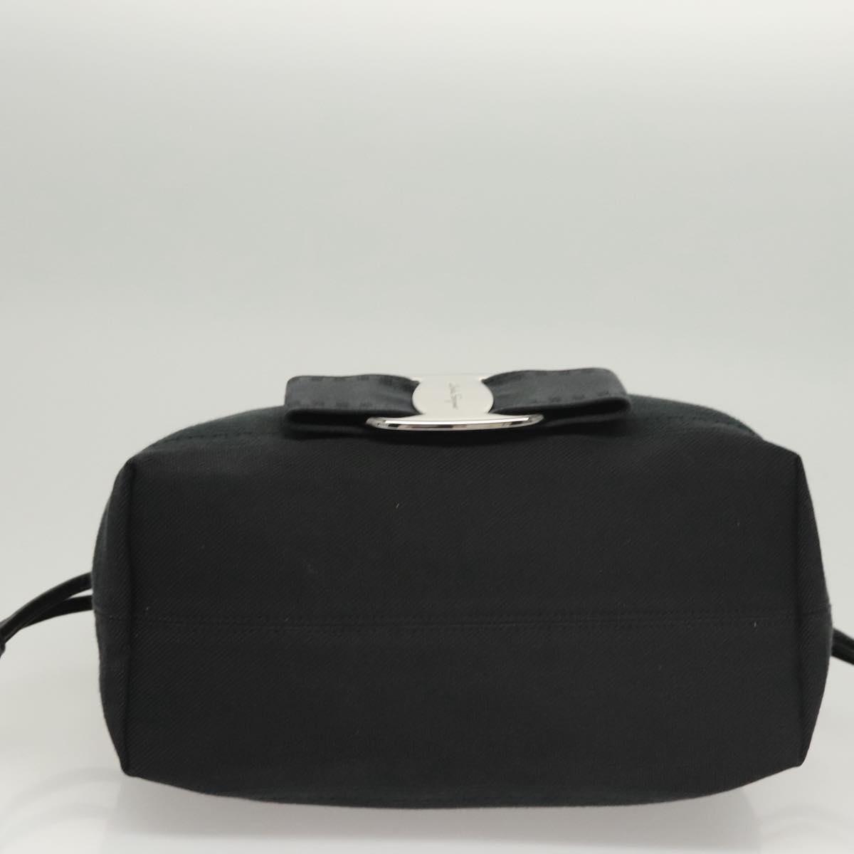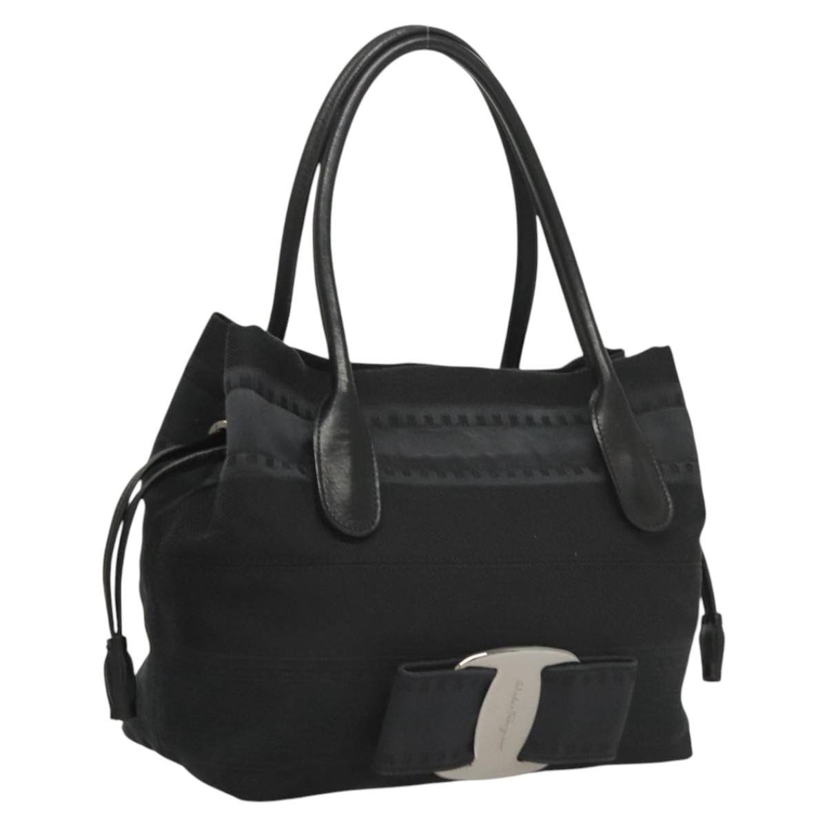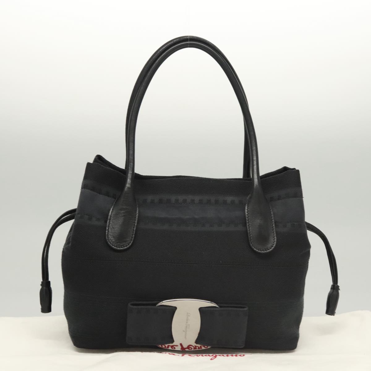 Salvatore Ferragamo Hand Bag Canvas Navy Silver Auth sw699