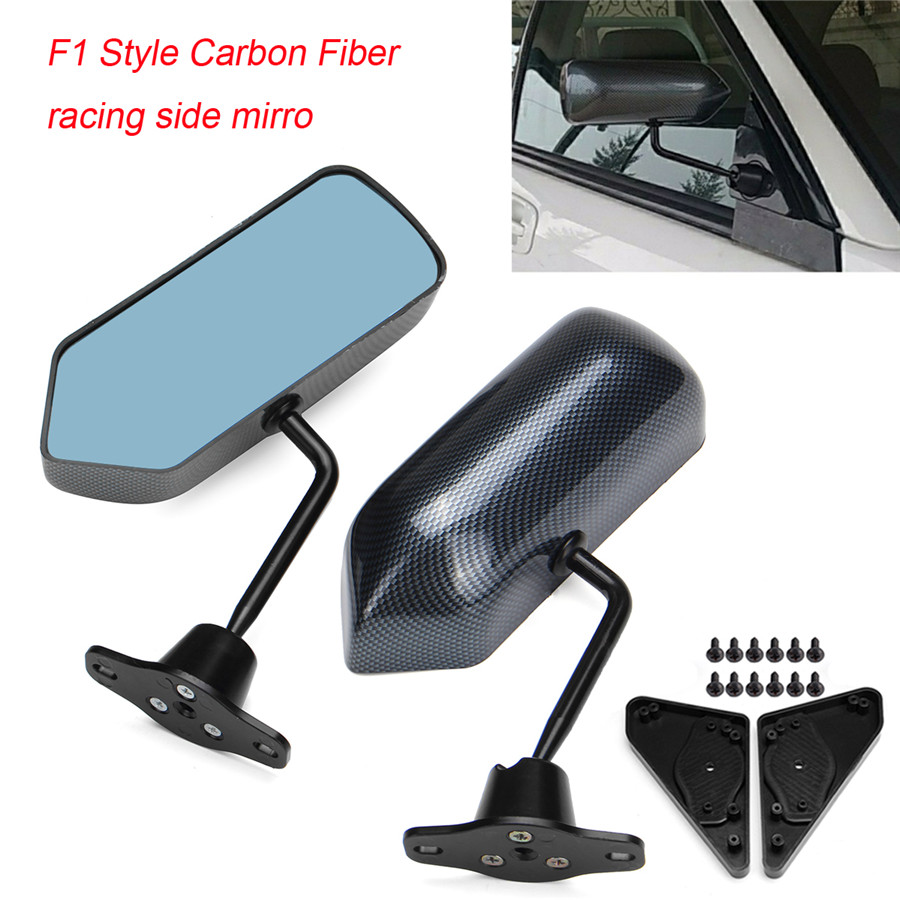 1 set Left + Right F1 Style Carbon Fiber Side Mirror w/Blue Mirror Surface