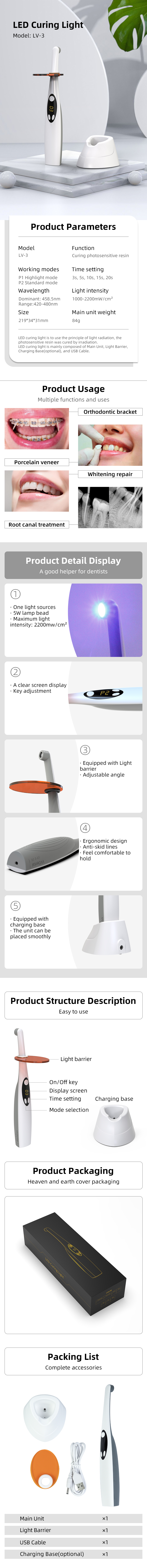 Wireless Dental LED Curing Lamp Dental Photopolymerizer Dental Resin Dental LV-3