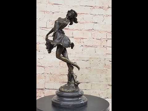 Balancing on her left tiptoe, the dancer stands atop a cube-formed multi-shift marble base, adding both stability and aesthetic appeal. The bronze cast reflects the finest museum quality, with intricate detailing that makes it a standout piece. The filigree precision in comparison to the original is truly amazing, showcasing the skill and artistry involved in its creation.