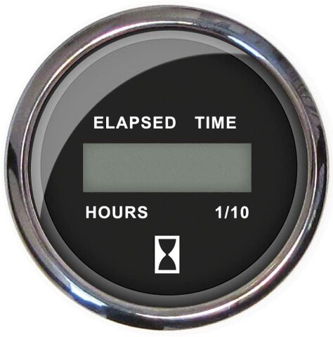 DESCRIPTION: Black Stainless Steel Gauge HourMeter 10000Hrs 12-32 VDC