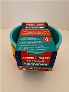 NORDIC WARE MICROWARE SET OF 4 PBA FREE COLORFUL 8 OZ MINI PREP BOWLS - COLORS INCLUDE BLUE,ORANGE,LIGHT GREEN AND RED