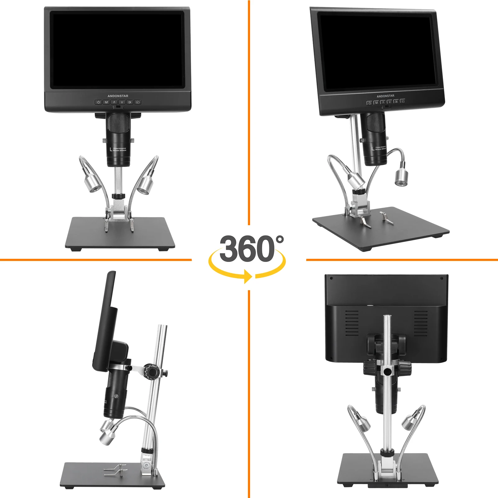 10 Inch Display: Industrial maintenance microscope, 10 inch LCD display, integrated imaging system with clear imaging quality, and the screen can be 180° adjusted to facilitate multi-angle observation. High sensitive chip, with faster response speed, and more convenient to use.