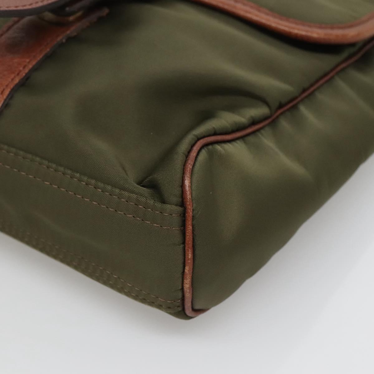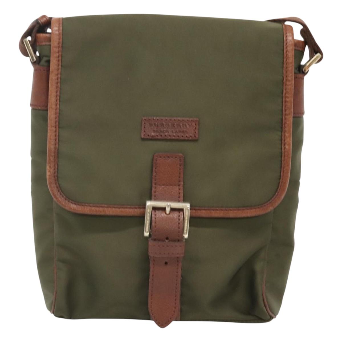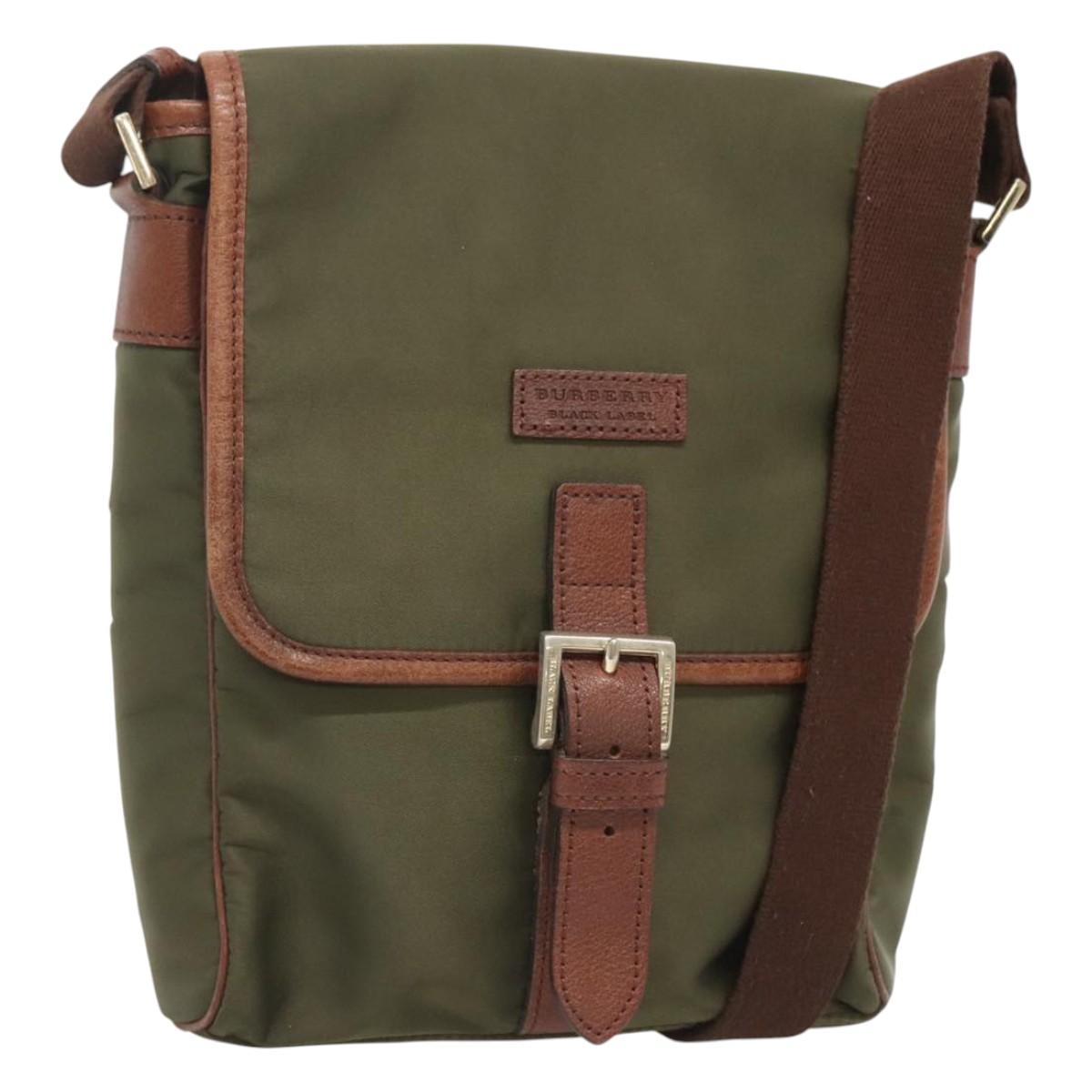 BURBERRY Black label Shoulder Bag Nylon Leather Khaki Gold Auth BA1704