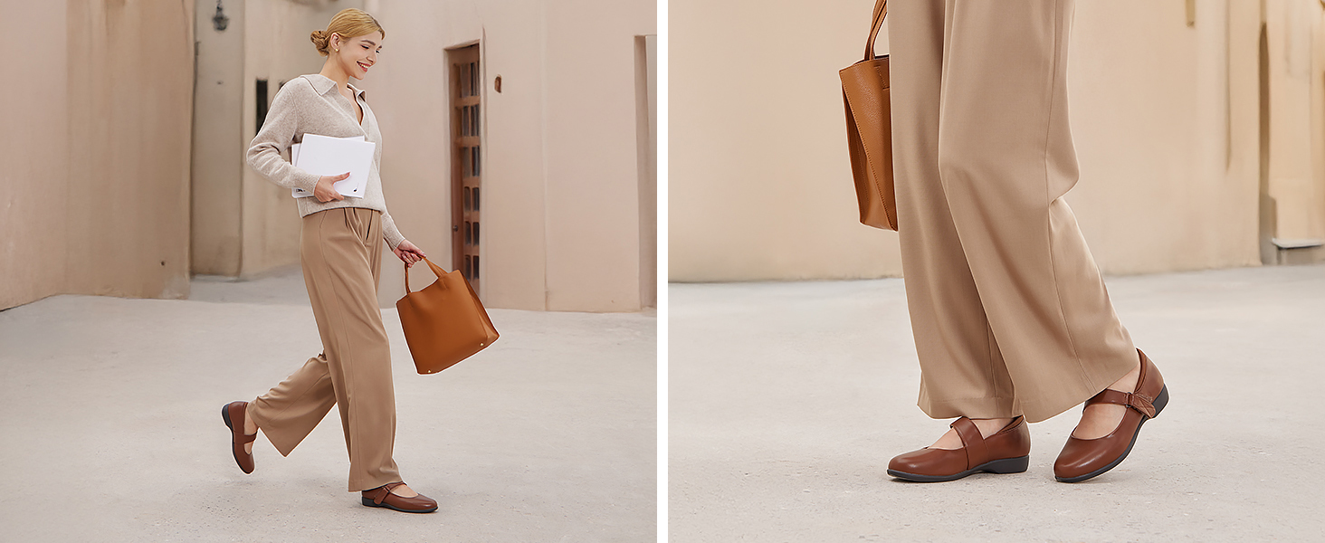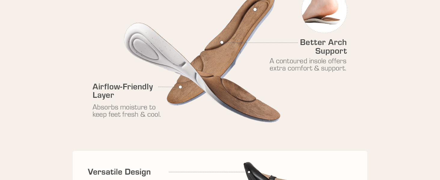 Supportive 3D Insole: Experience unparalleled support with the 3D molded insole in these flat shoes. The insole features a breathable and moisture-absorbing surface, highly resilient memory foam, and a U-shaped heel cup for a perfect fit that alleviates the pressure on your feet.