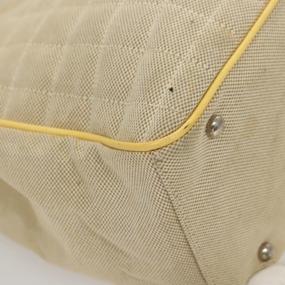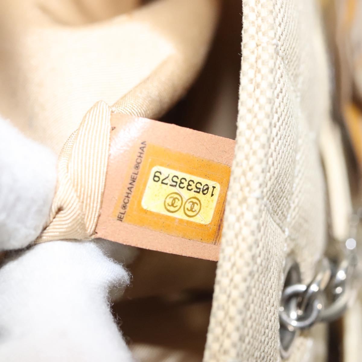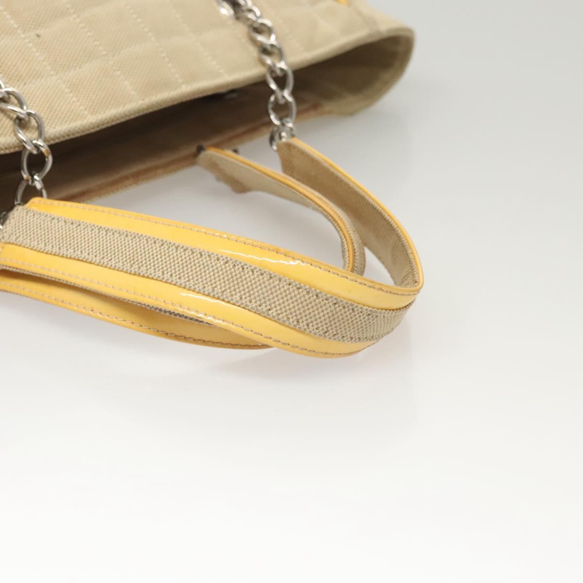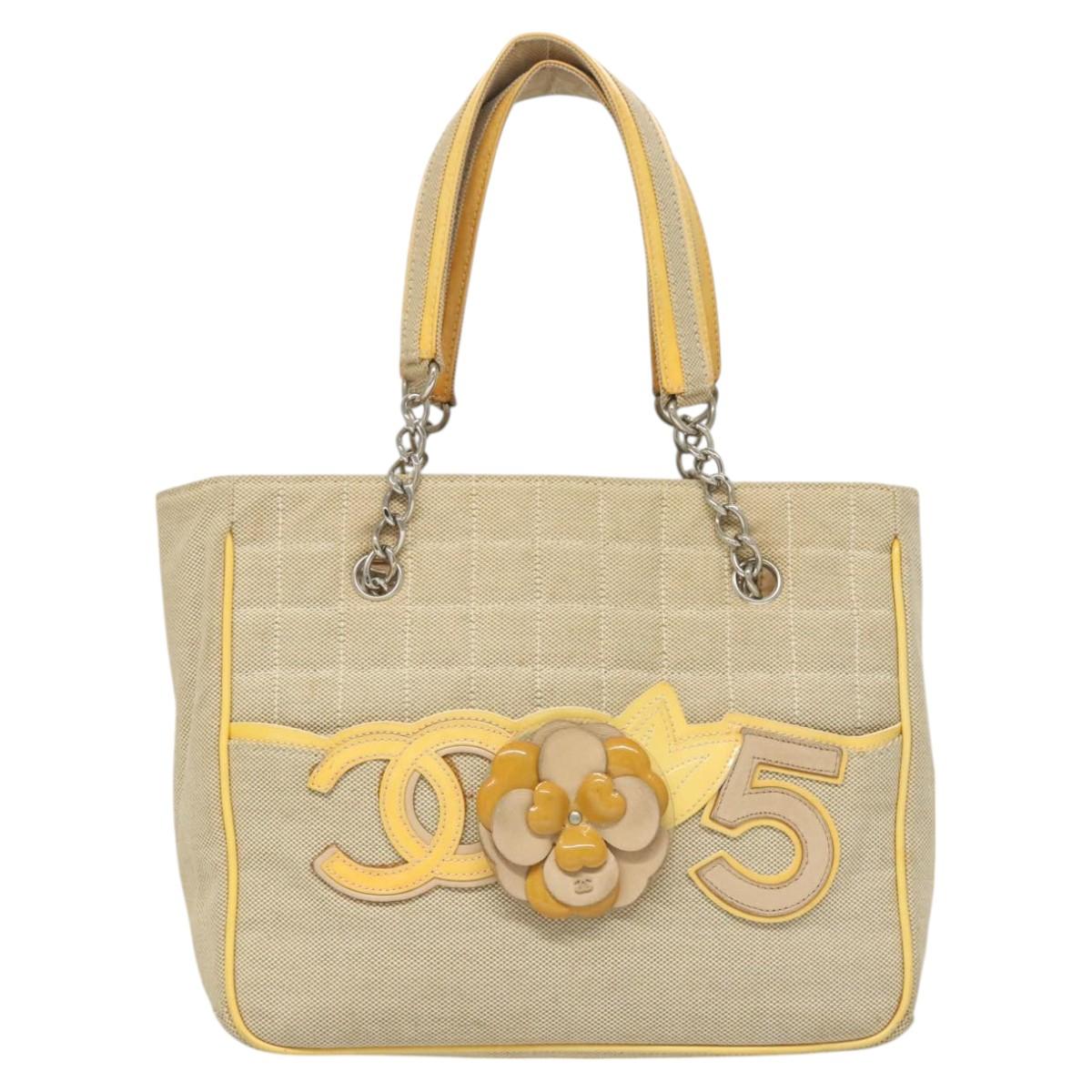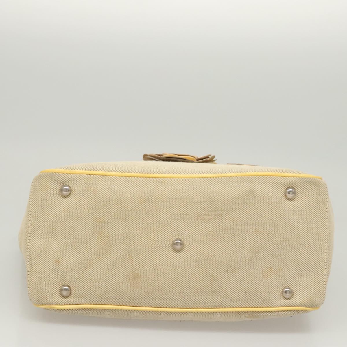 CHANEL Camelia Choco Bar Hand Bag Canvas Beige Silver CC Auth sw727