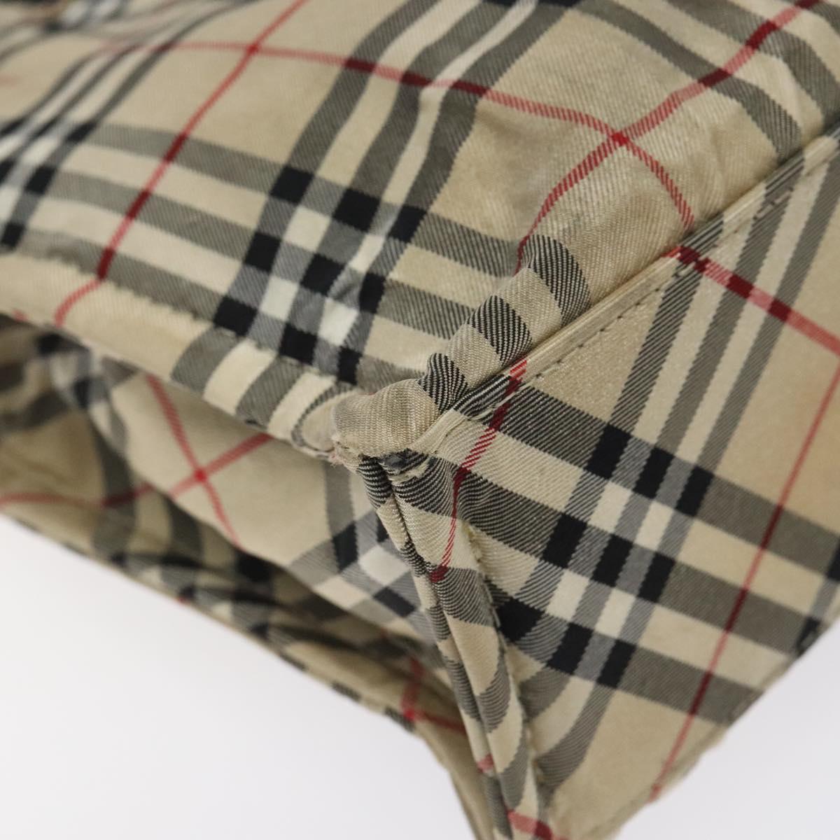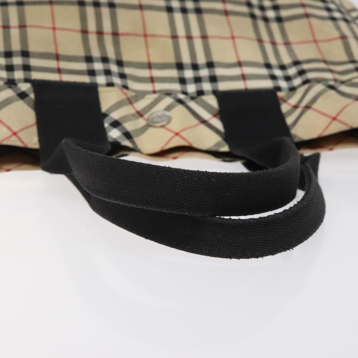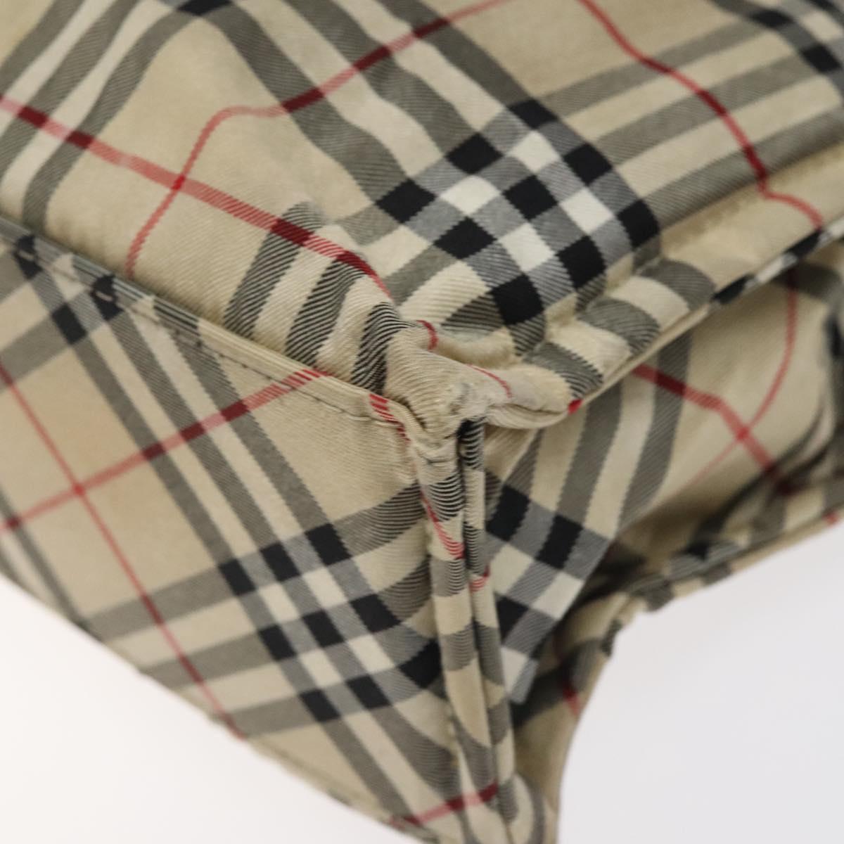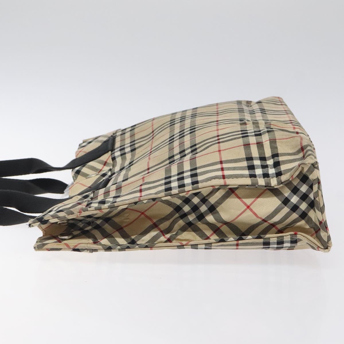 BURBERRY Nova Check Blue Label Hand Bag Nylon Beige Silver Auth hs1711