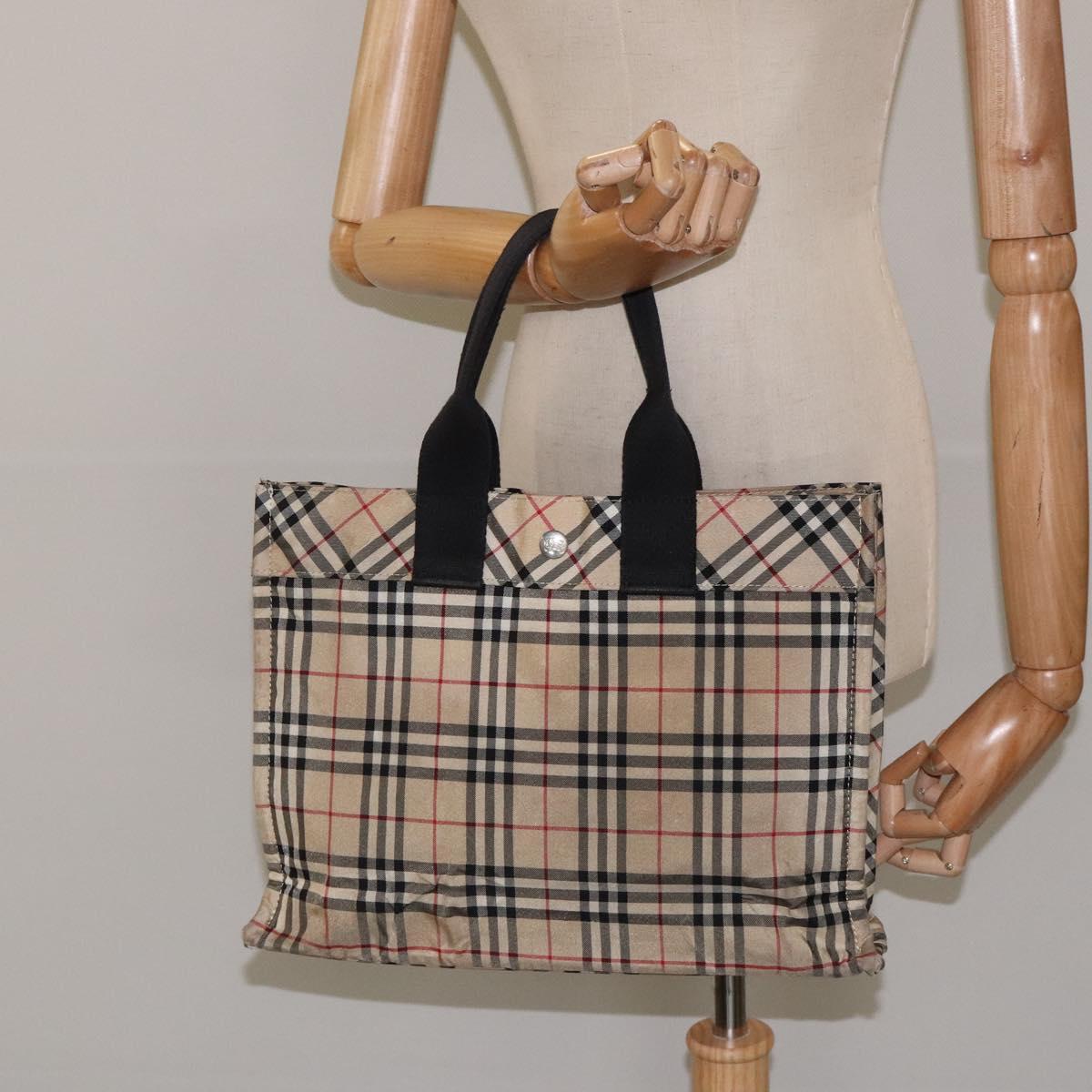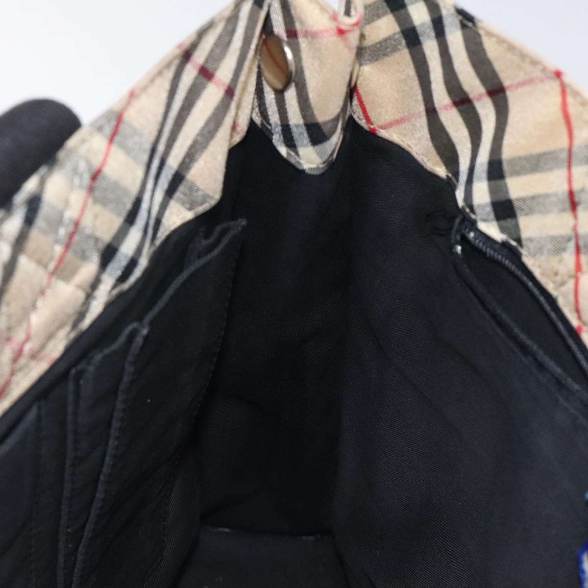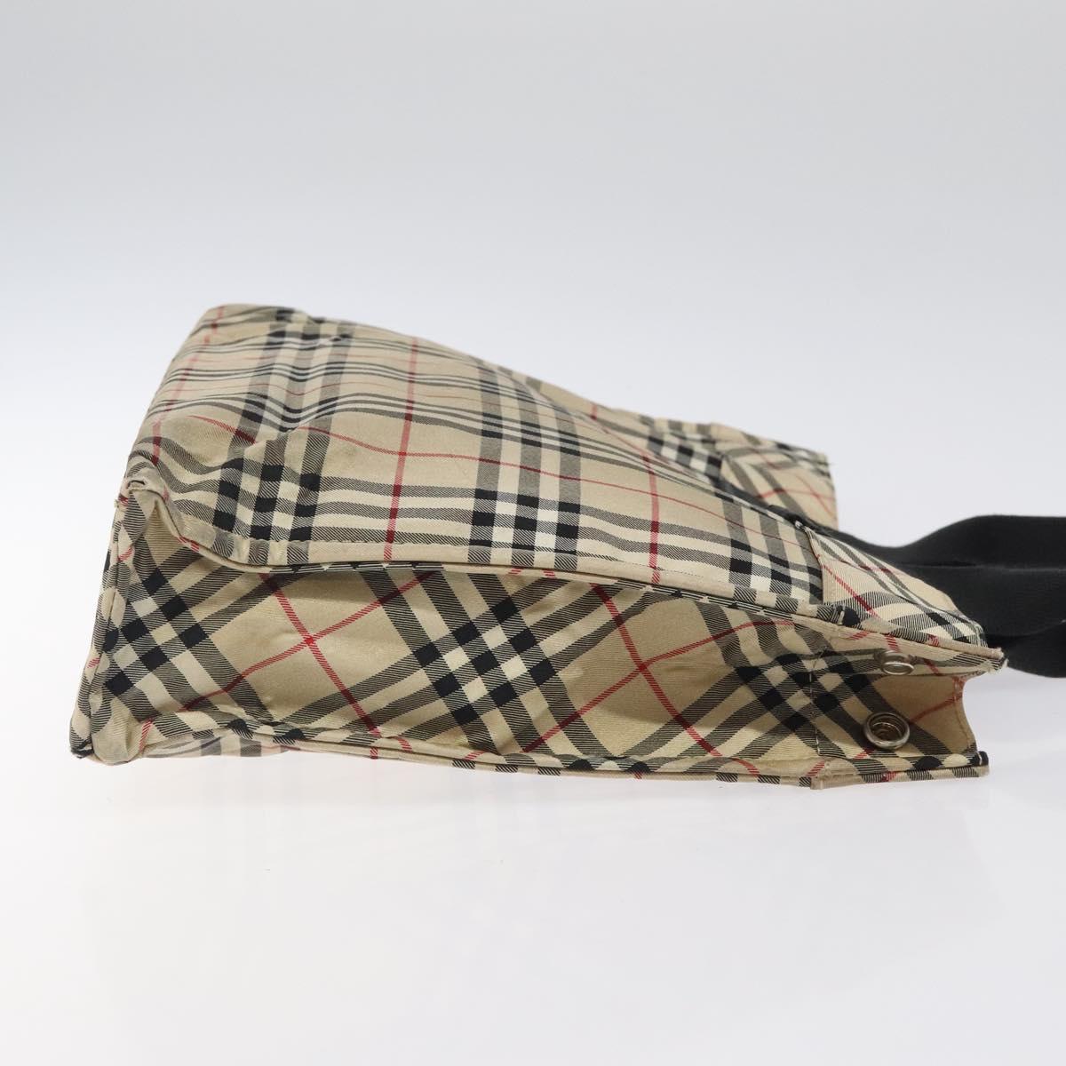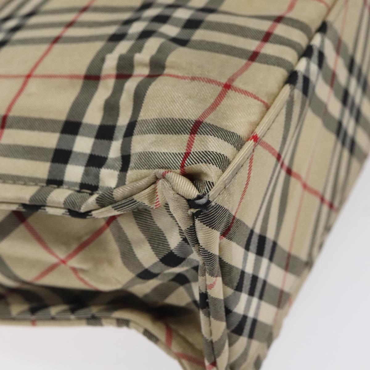 BURBERRY Nova Check Blue Label Hand Bag Nylon Beige Silver Auth hs1711