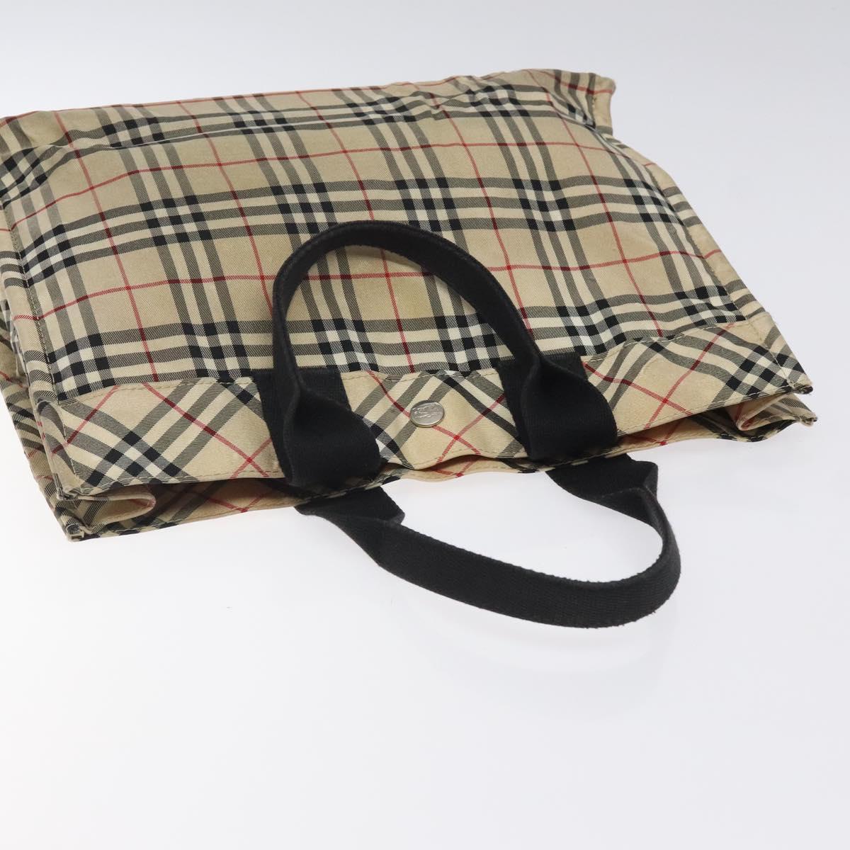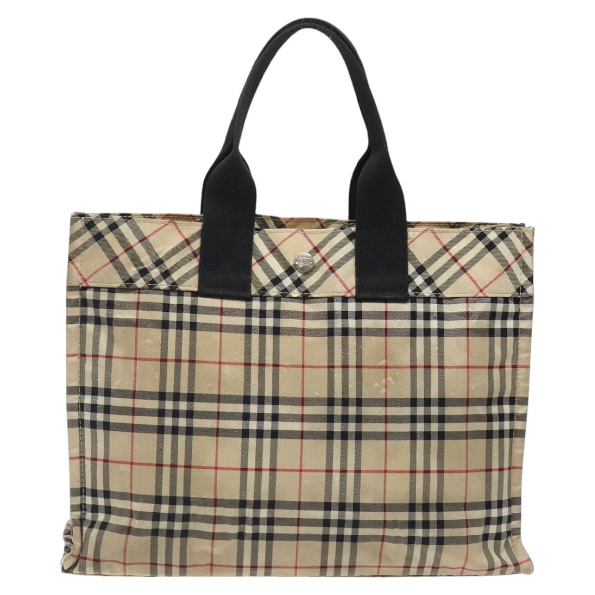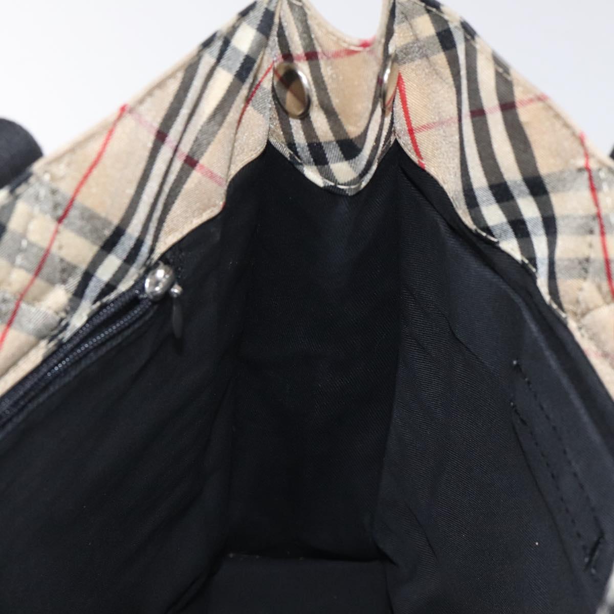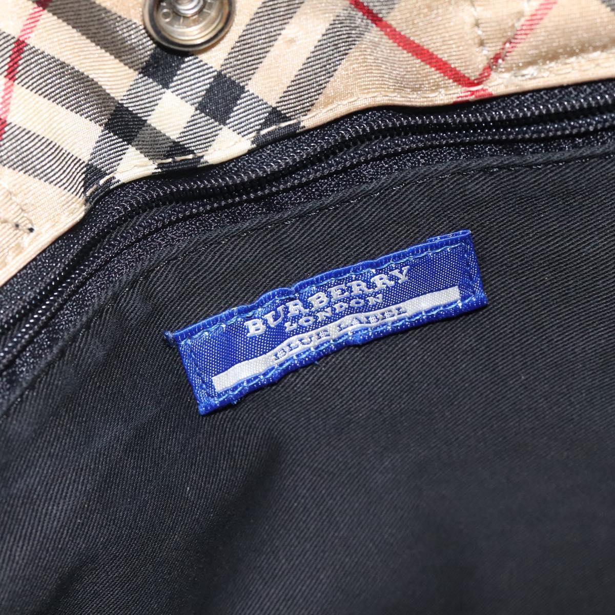 BURBERRY Nova Check Blue Label Hand Bag Nylon Beige Silver Auth hs1711