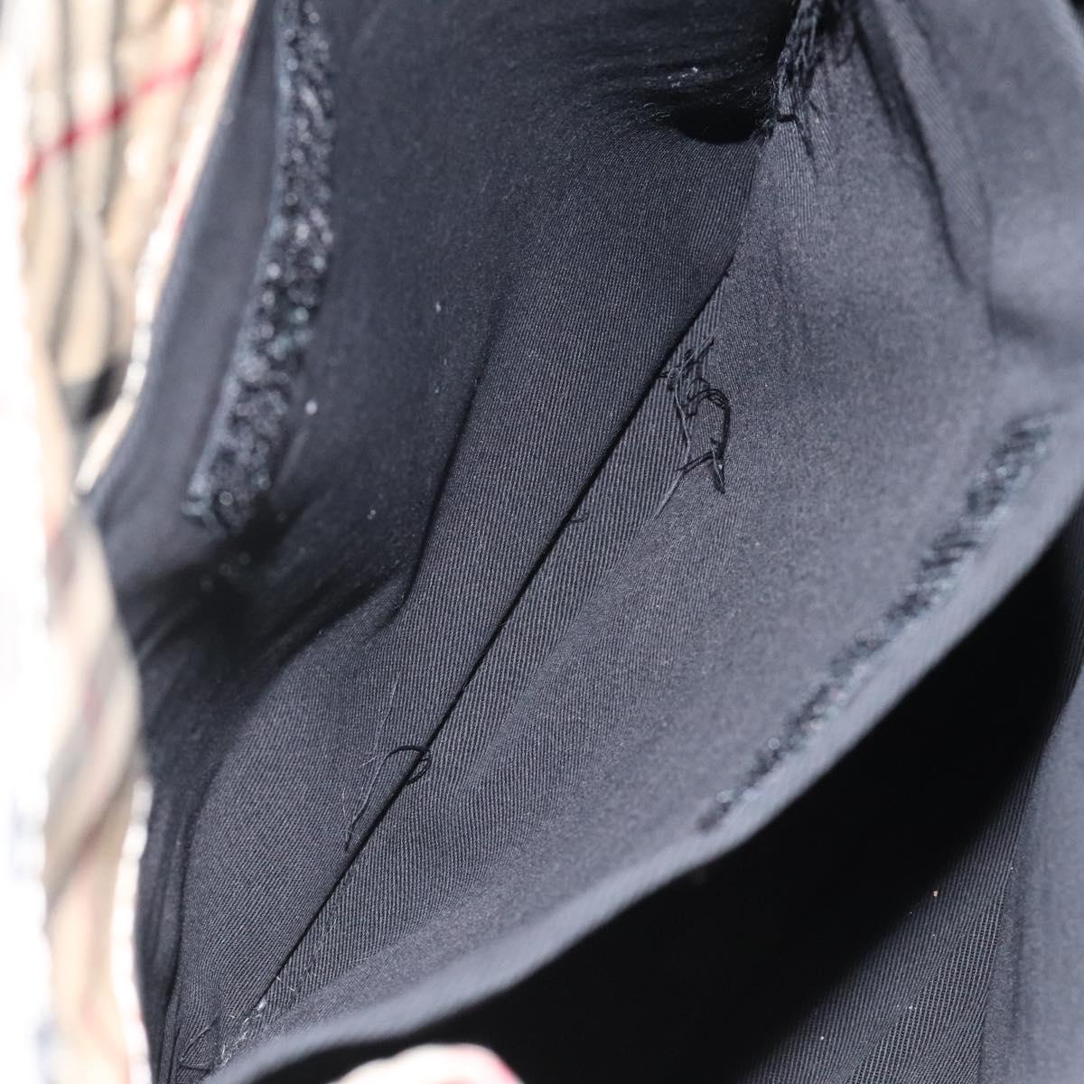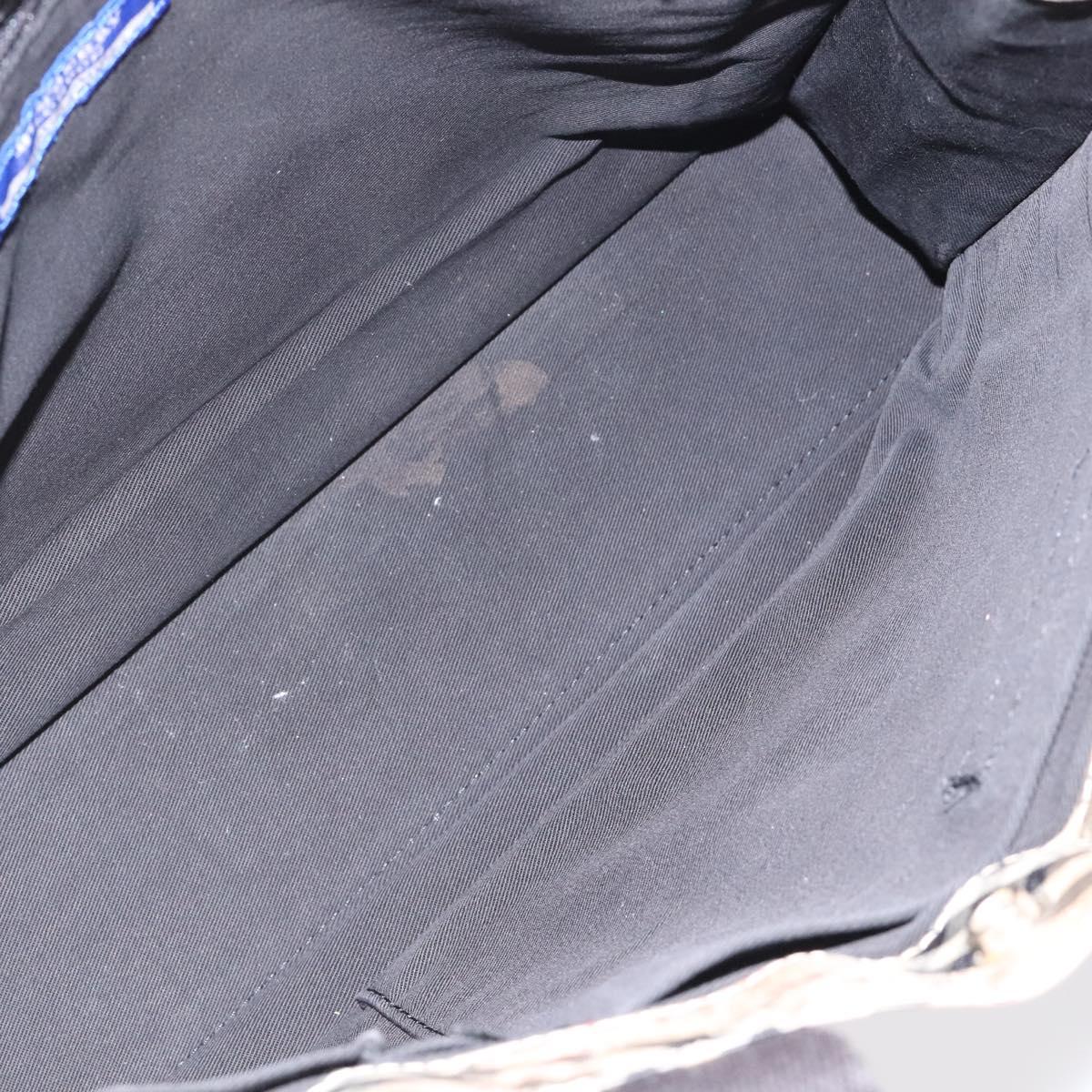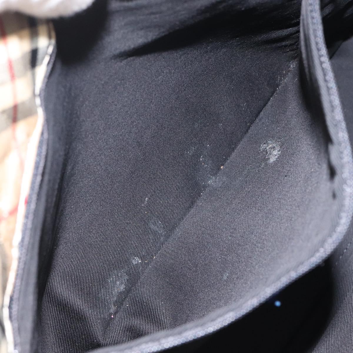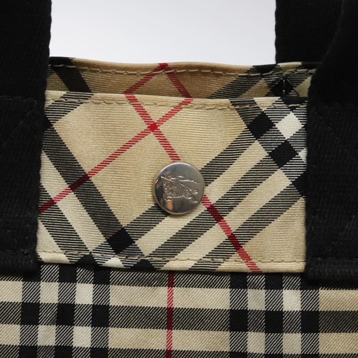BURBERRY Nova Check Blue Label Hand Bag Nylon Beige Silver Auth hs1711