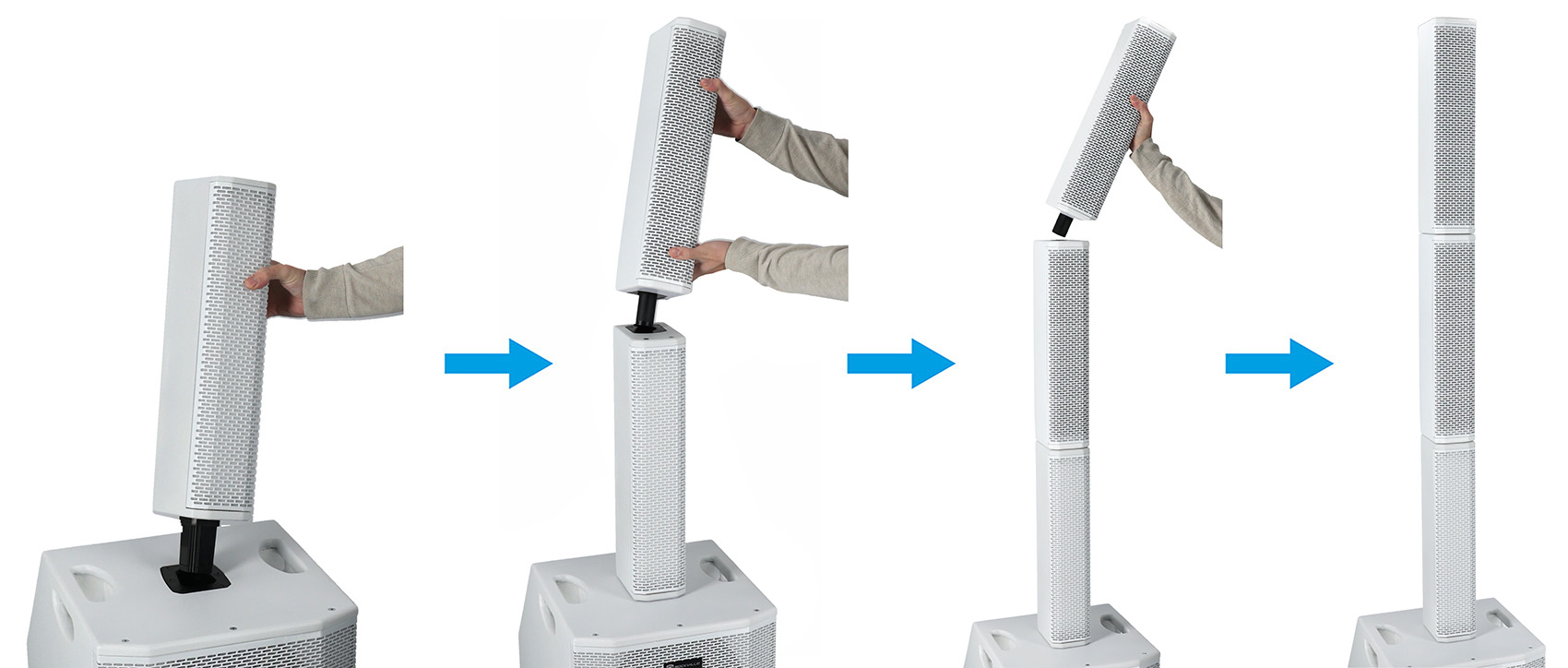 When we developed this array system we had a few requirements and goals. We needed it to go way louder then the other ones on the market because we wanted to give you guys a solution that you can just take one speaker to your gig and have enough volume to fill up a large hall. The second requirement was that we wanted it to sound like you had a real sub with extremely deep bass. The third requirement was that we have enough inputs and playback options where you can do most gigs without the need to bring a separate mixer.