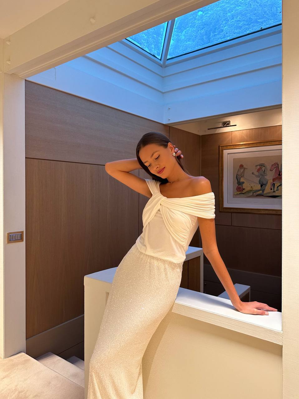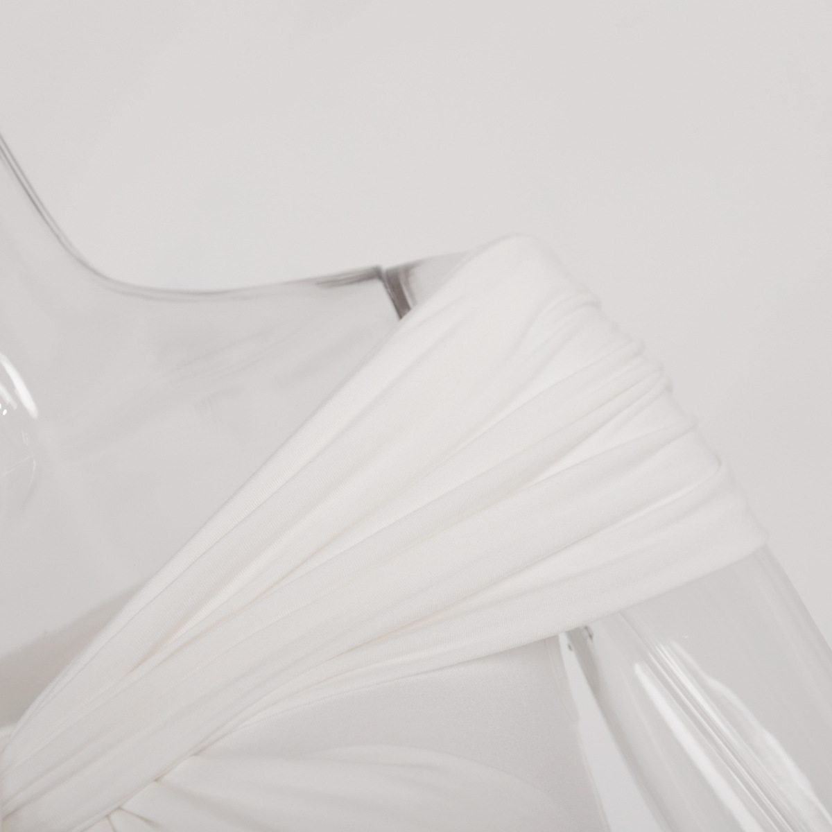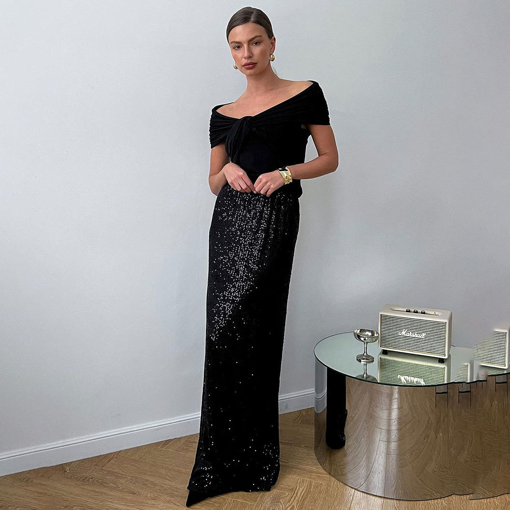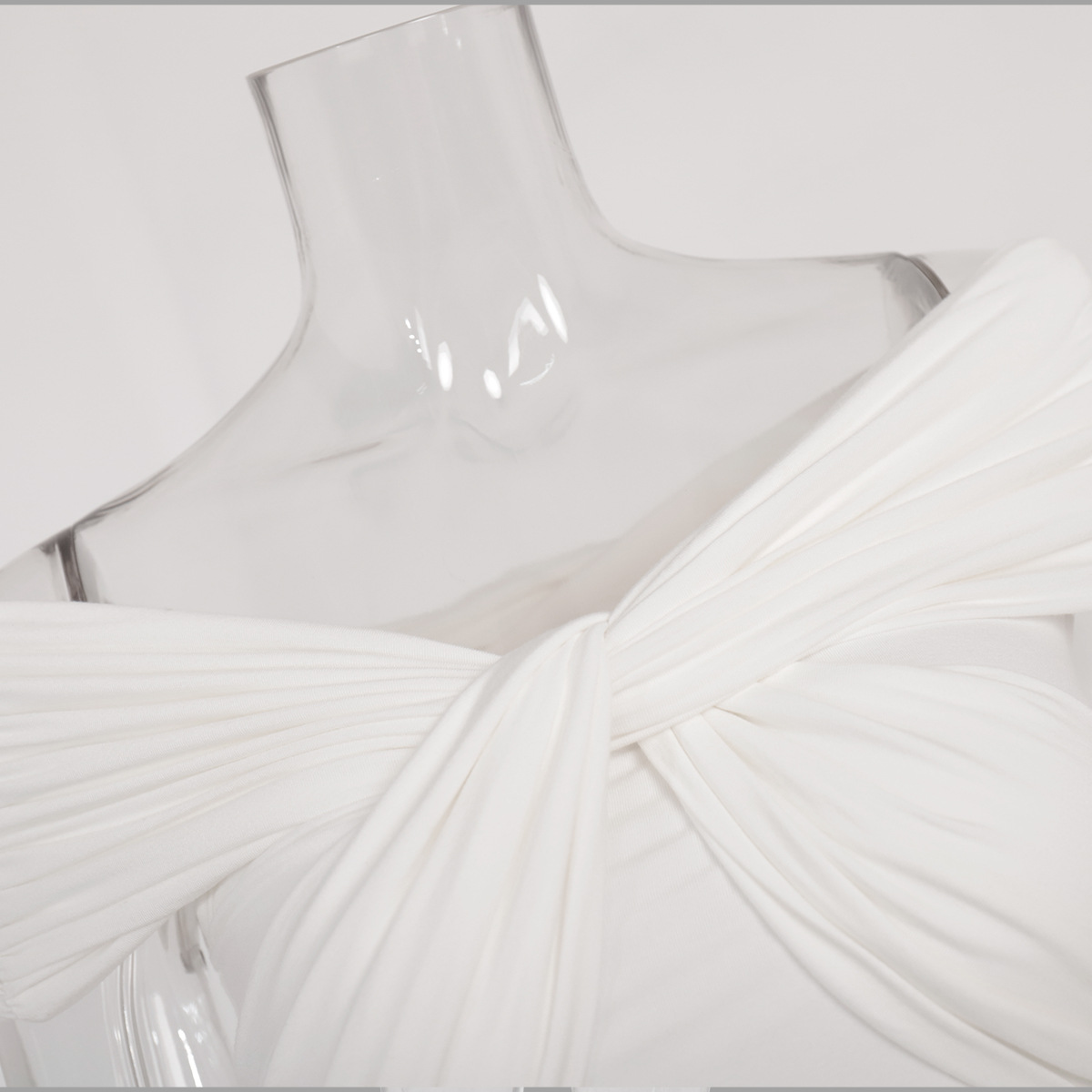 Top pleated V-neck off-the-shoulder short-sleeved T-shirt