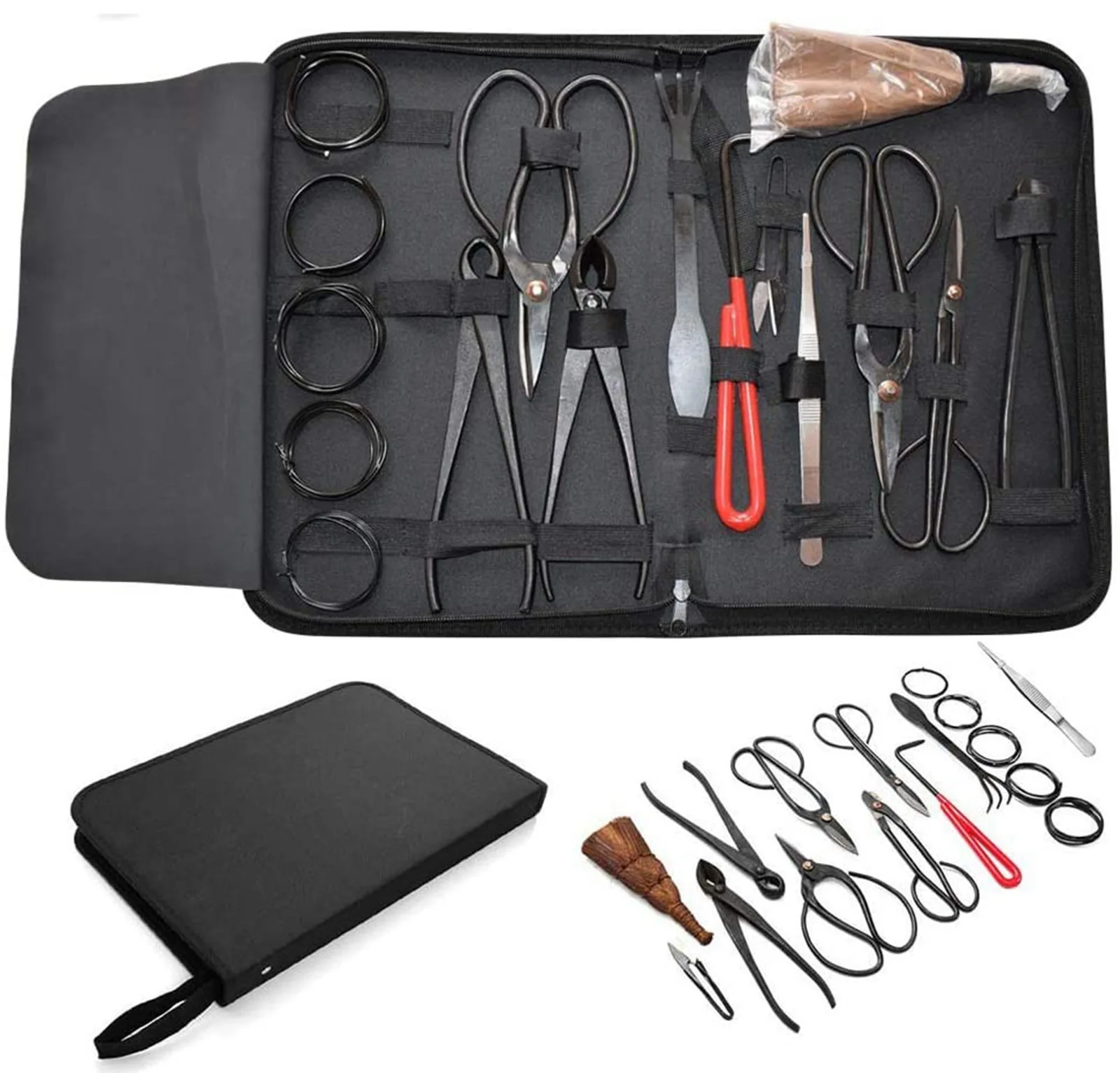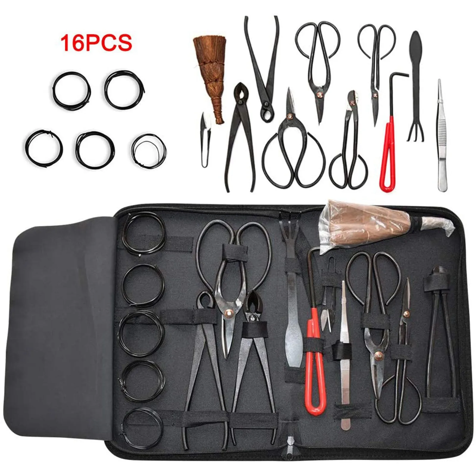 -Complete 16-piece bonsai tool set quality assurance-Made of fully tested and lightly oiled carbon steel, it has excellent durability, portability and easy storage.