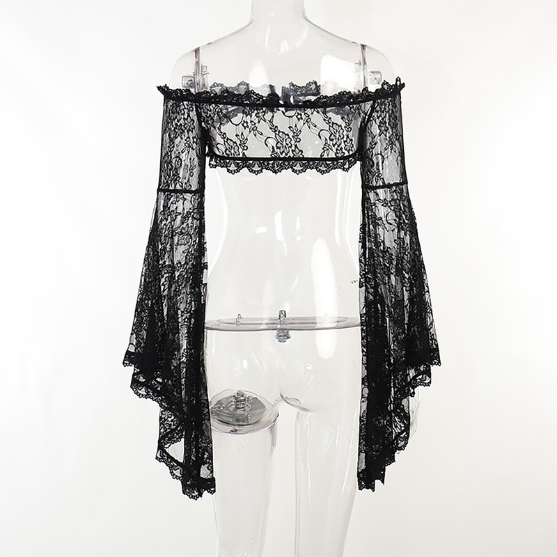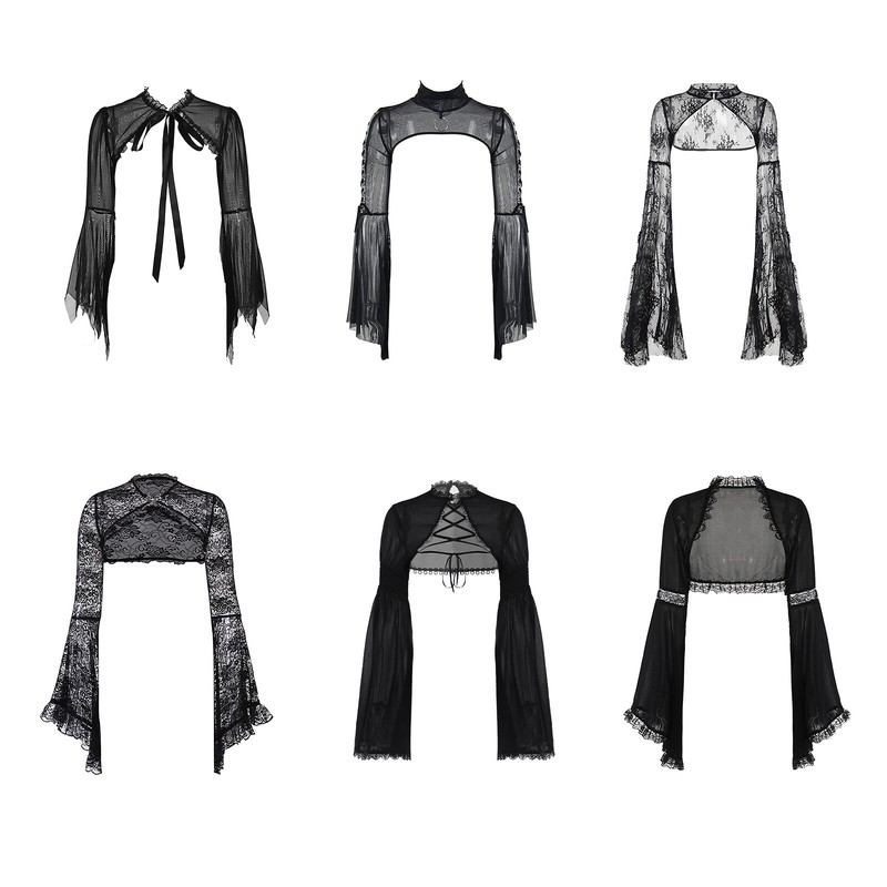 Women Crop Top Mesh Tops Lace Cardigan Steampunk Clothing Long Bell Sleeve Punk