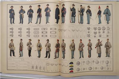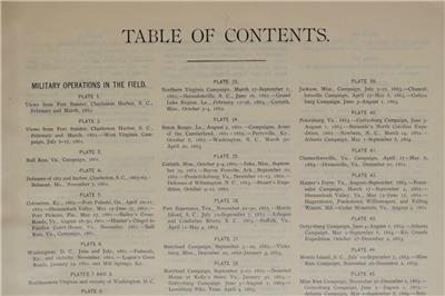 The set includes the complete index. Plates 1 to 135-C are of Military Operations in the Field, Plates 136 to 161 are of General Topographical Maps, Plates 162 to 171 are to Military Divisions and Departments, Plates 172 to 175 are of Miscellaneous items including scenes, uniforms, military equipment, flags and standards, and more.