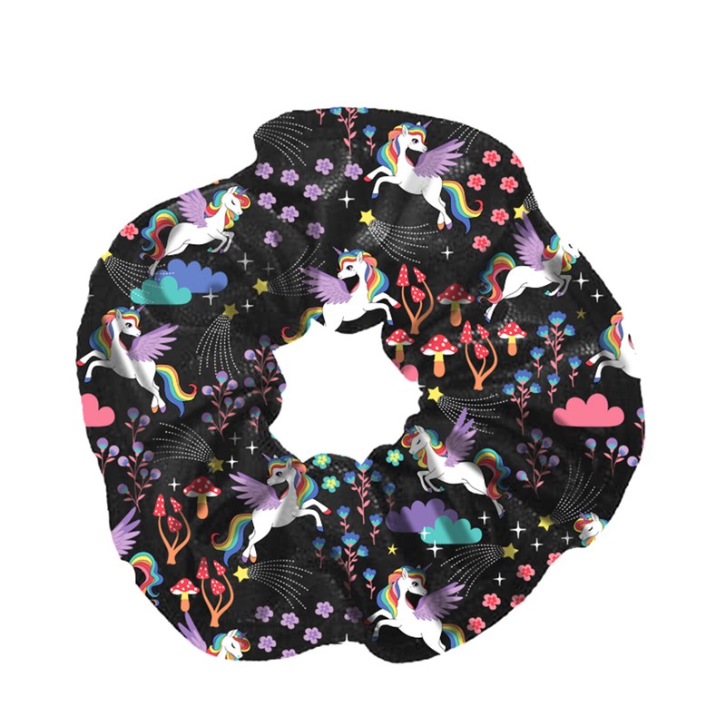 Breites Satin-Haargummi mit Rüschen und Cartoon-Muster, ist 12–36cm/4.7–14 Zoll breit.