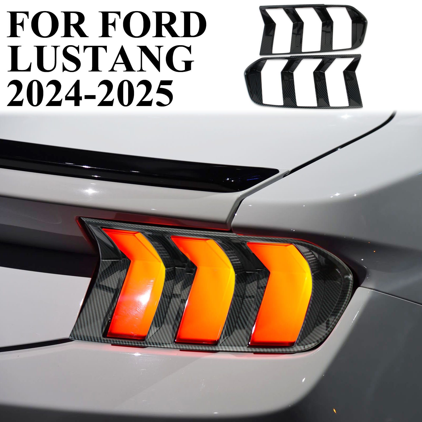 Carbon Fiber Style Rear Tail Light Lamp Cover Molding Trim Fit For Ford Mustang 2024-2025 decoration Accessories