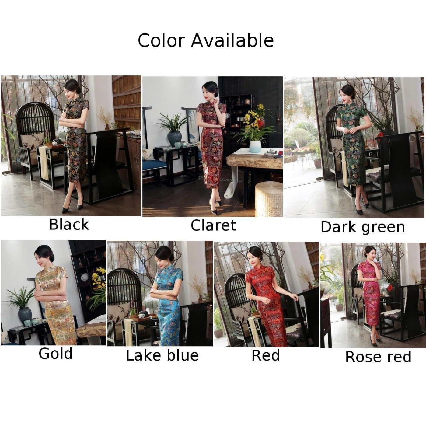 Satin Qipao Dress Featuring Beautiful Flower Embroidery for Ladies Fashion