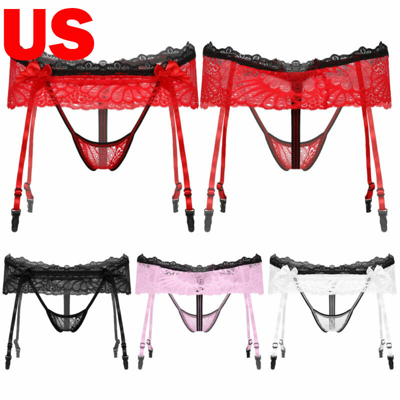 Mens Sissy Crossdresser Panties Underwear Floral Lace Briefs Crotchless Bottoms
