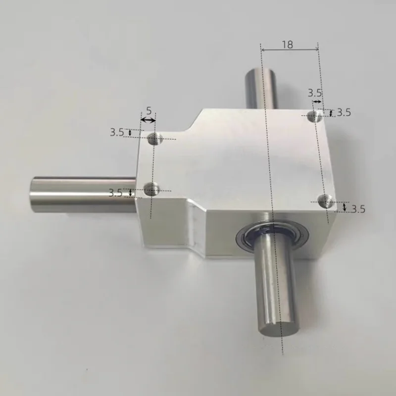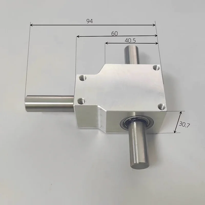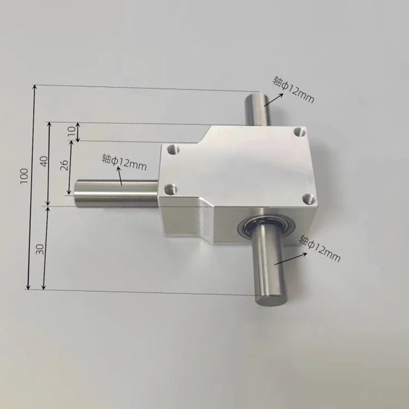 Product Name:Right Angle Transmission Gearbox Frame Material: Aluminum Alloy Direction of rotation: Same direction Shaft outer Diameter: 12MM Maximum speed: 2000RPM Maximum load: 20KG Reduction ratio: 1:1