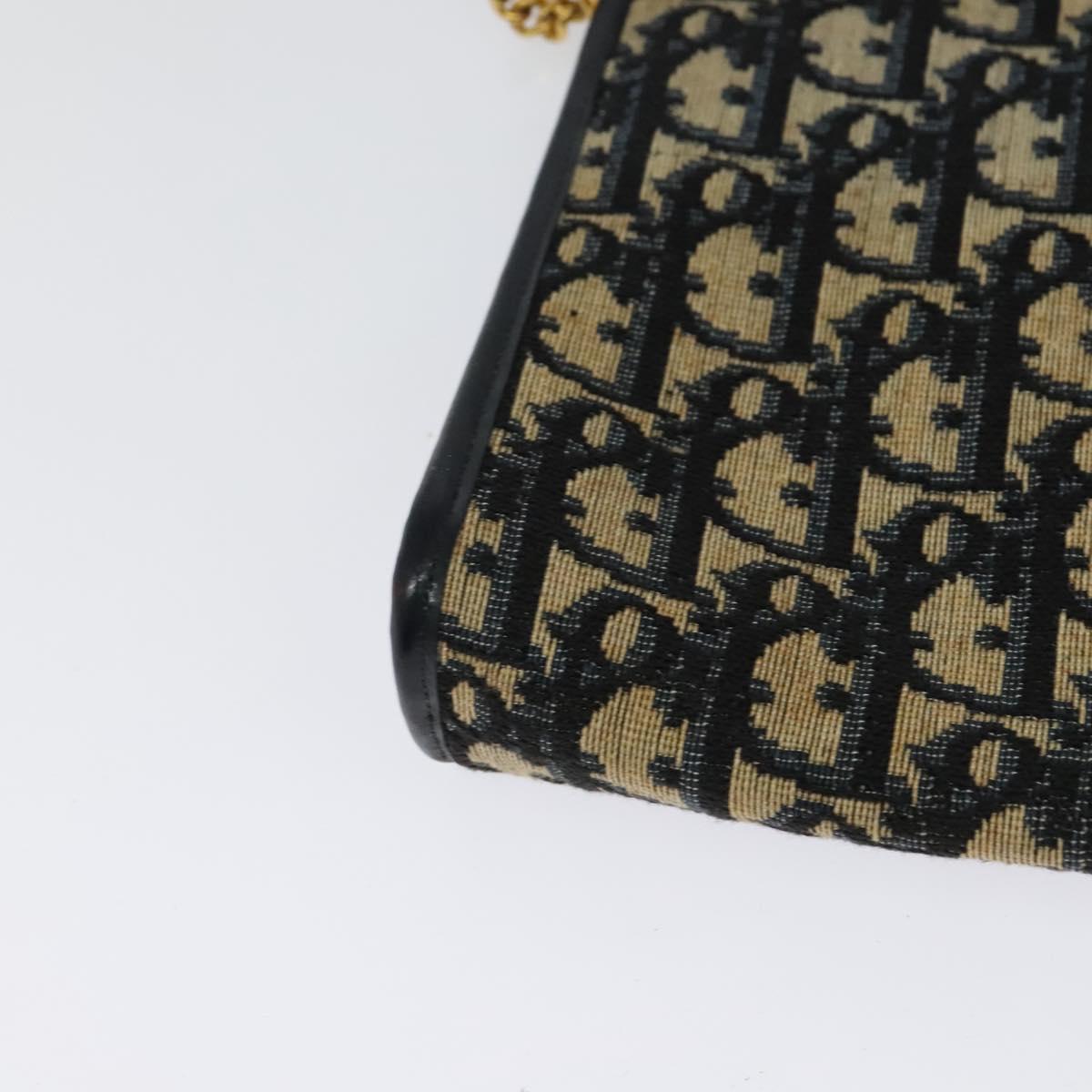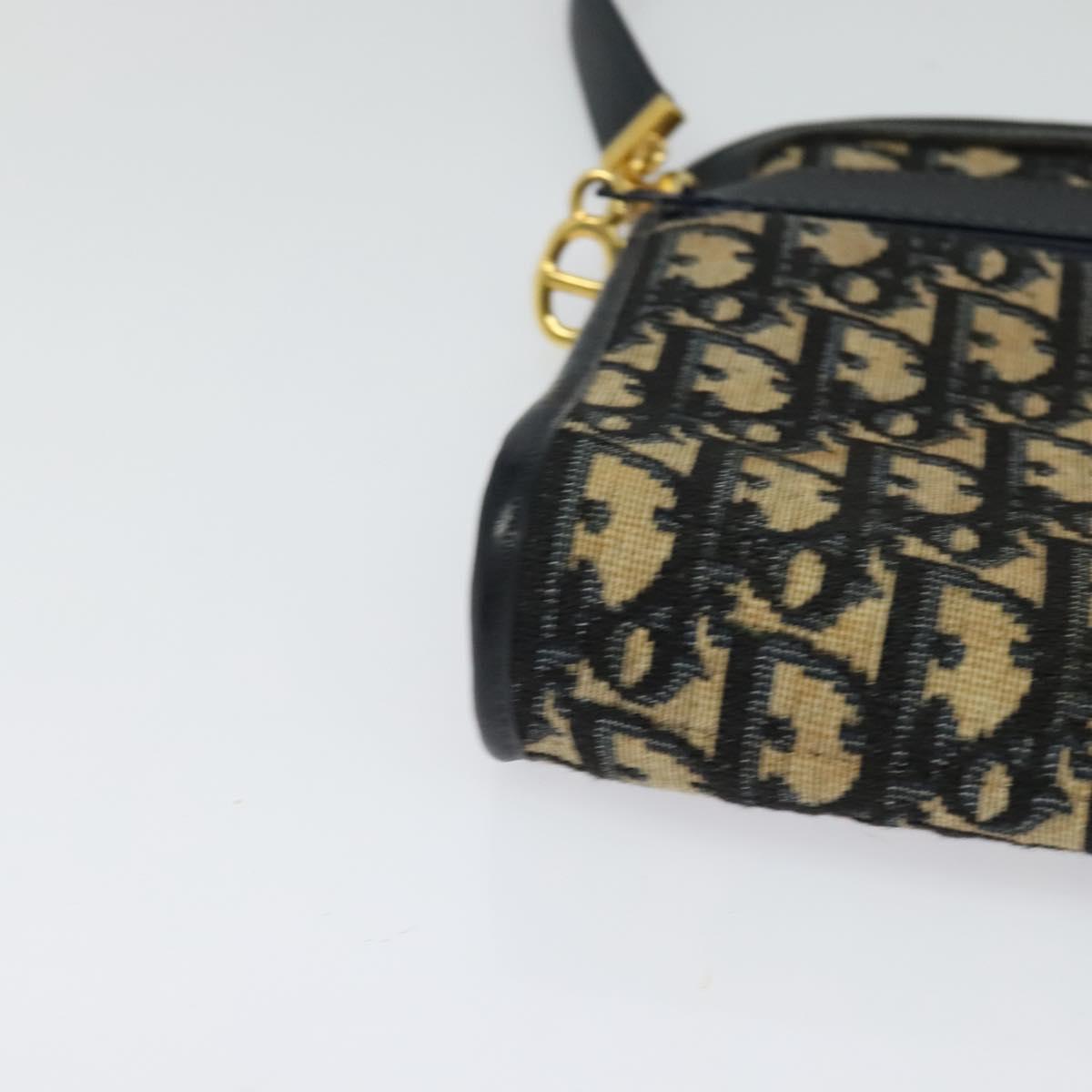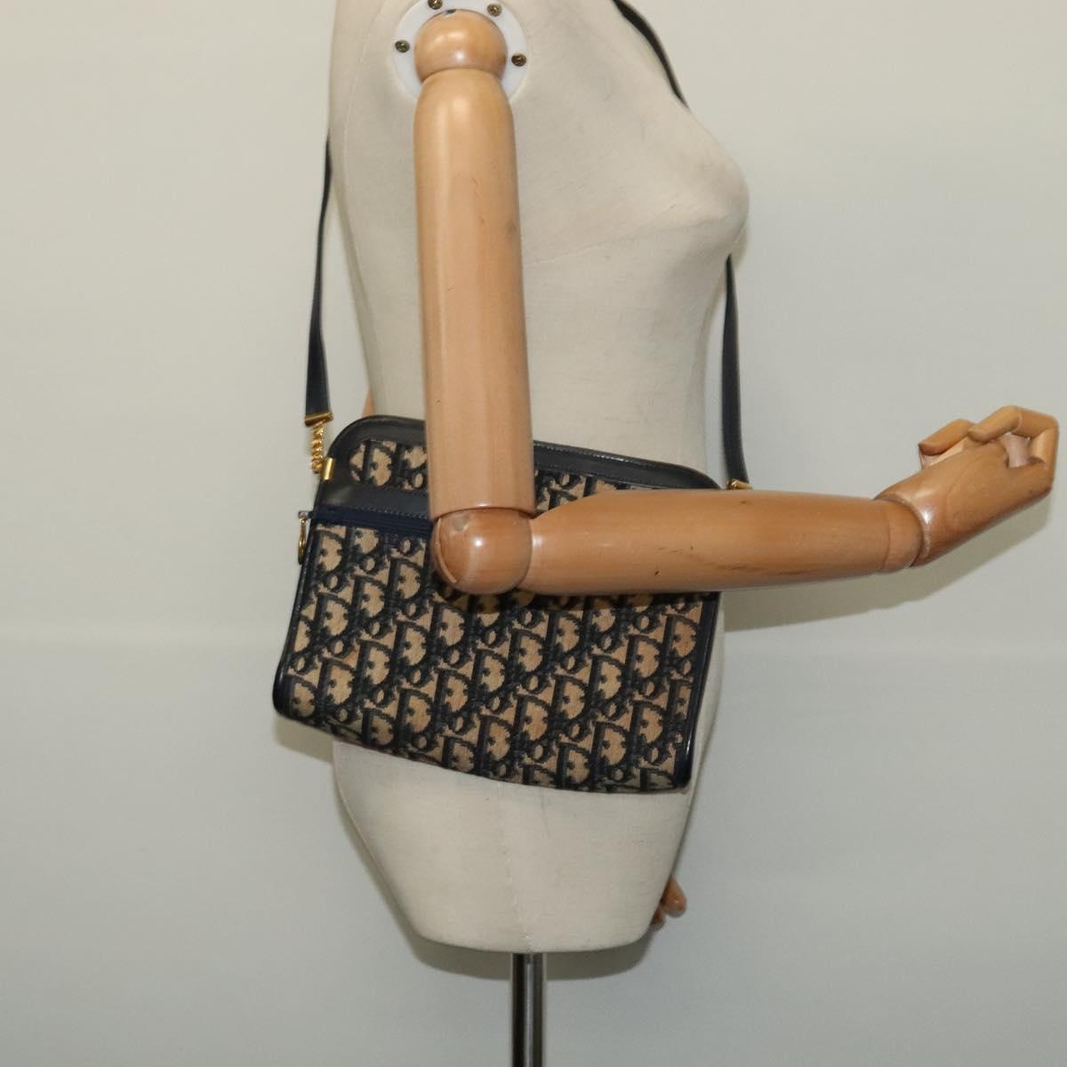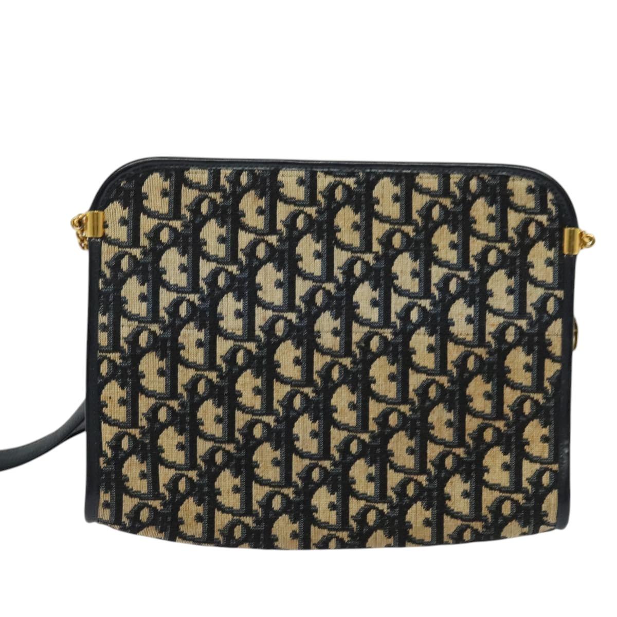 Christian Dior Trotter Canvas Shoulder Bag Navy Gold Auth 125910