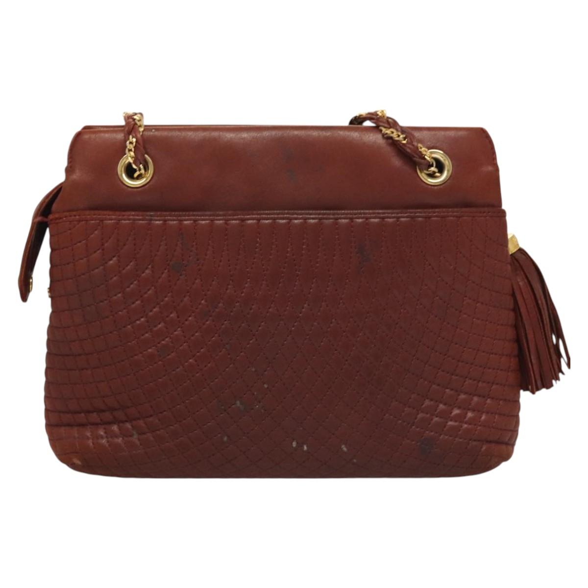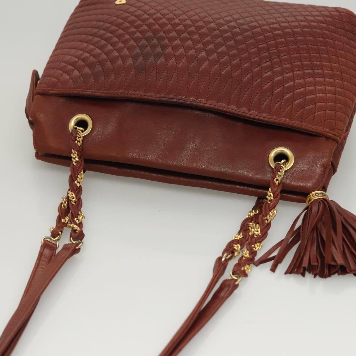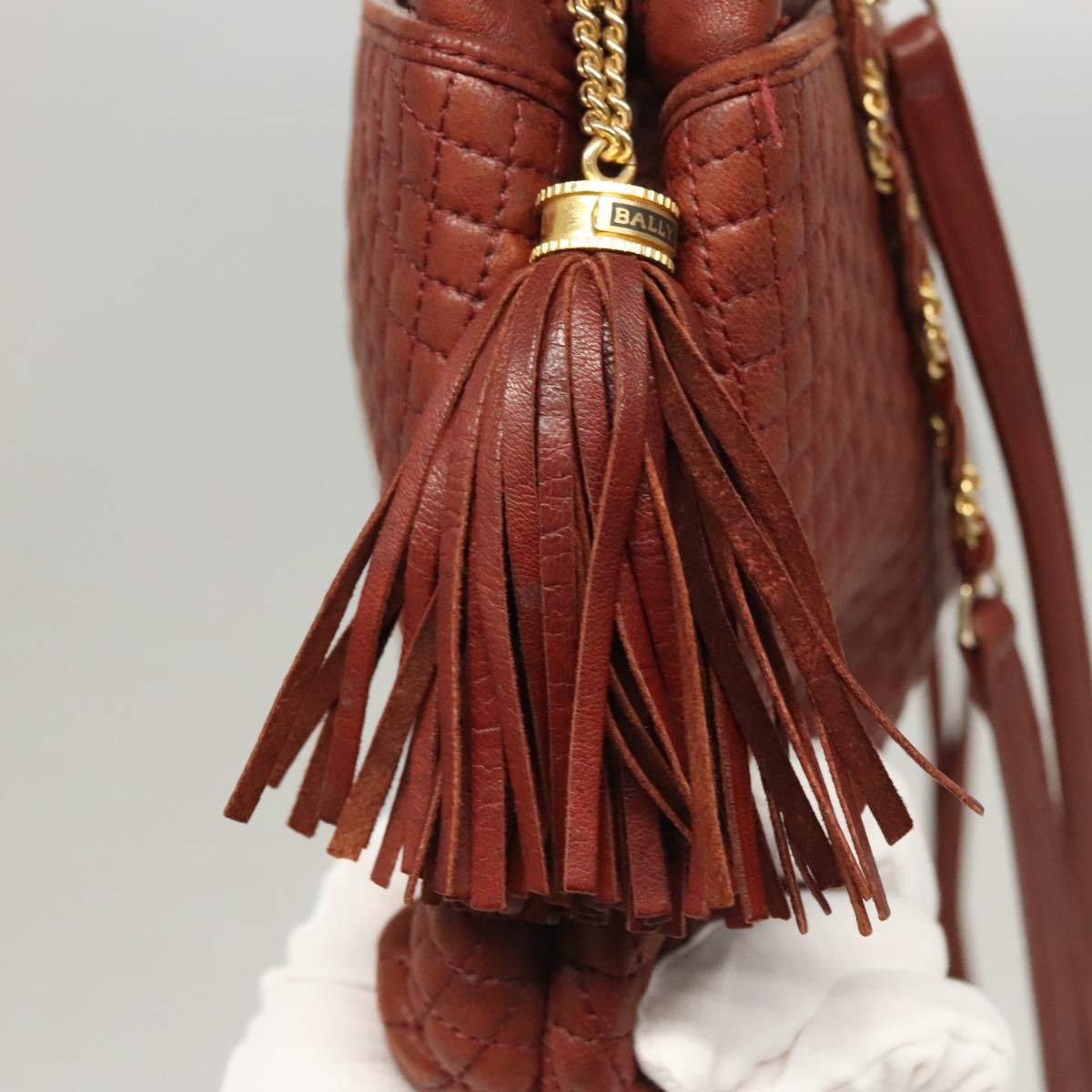 BALLY Quilted Chain Shoulder Bag Leather Brown Gold Auth BA2645